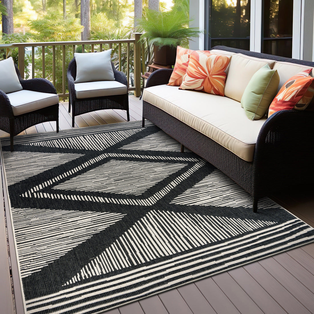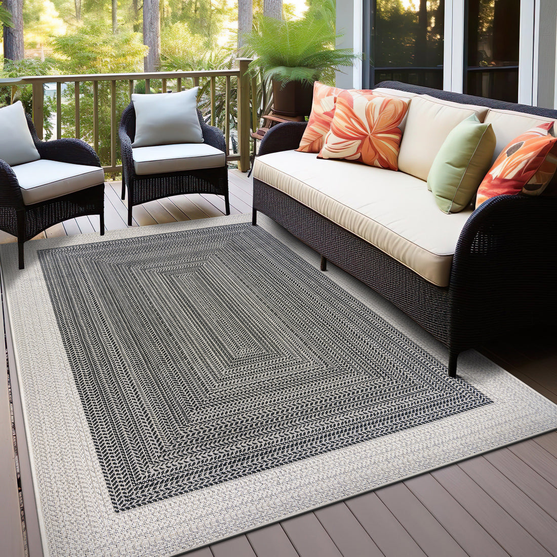 Contemporary Tropical Leaves Flatweave Indoor/Outdoor Area Rug