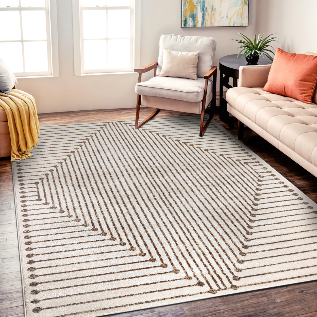 Contemporary Bohemian Stripe Indoor Area Rug - CREAM 5'x7' - Beige