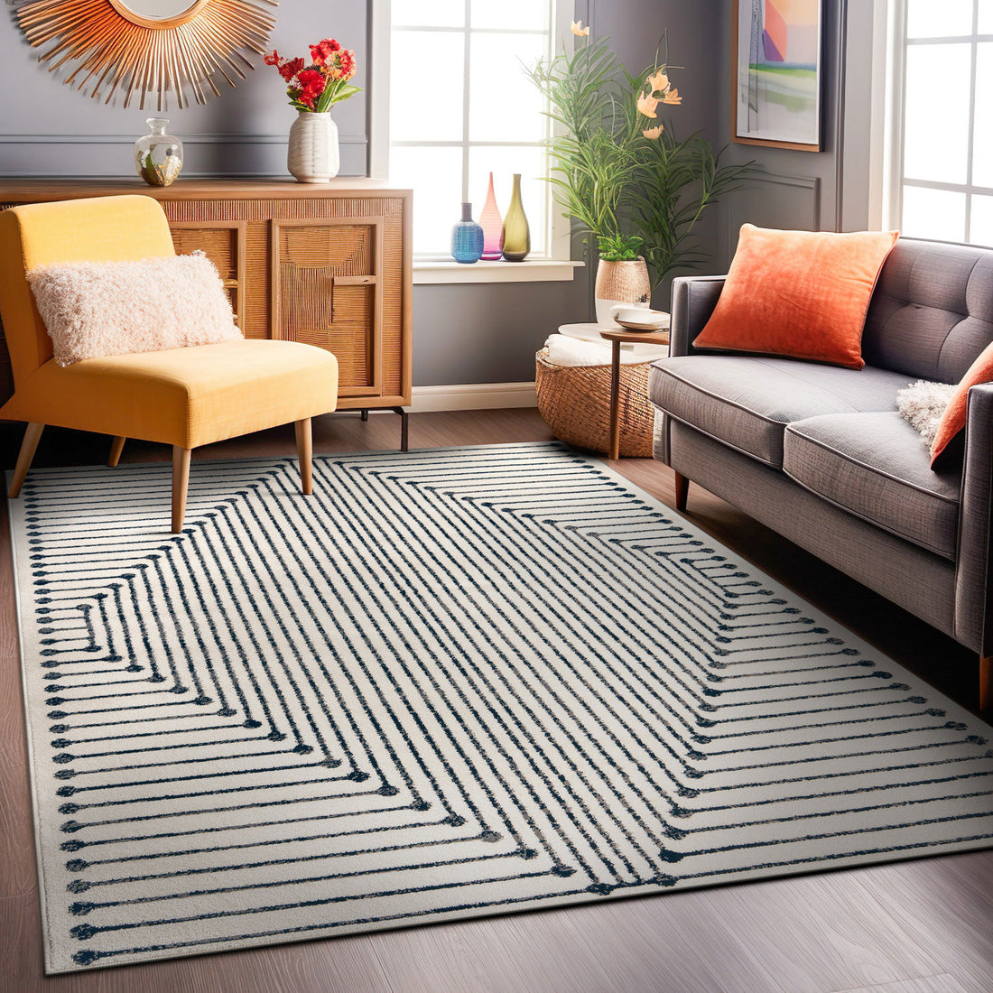 Contemporary Lines Indoor Area Rug - BLACK 5'x7' - Black