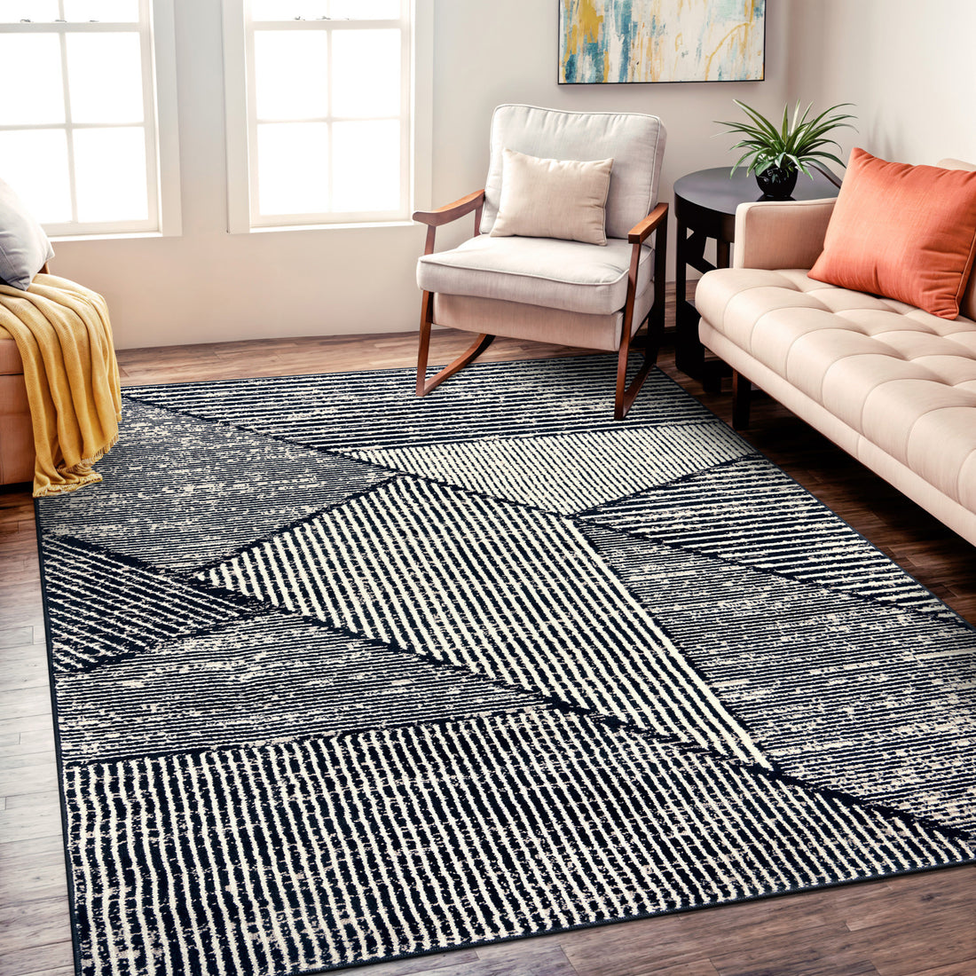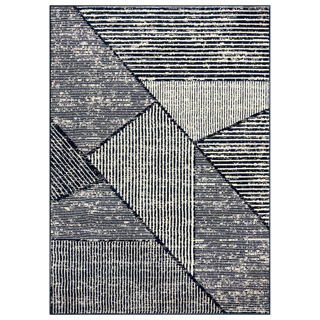 Contemporary Distressed Geometric Indoor Area Rug - CREAM 5'x7' - Black