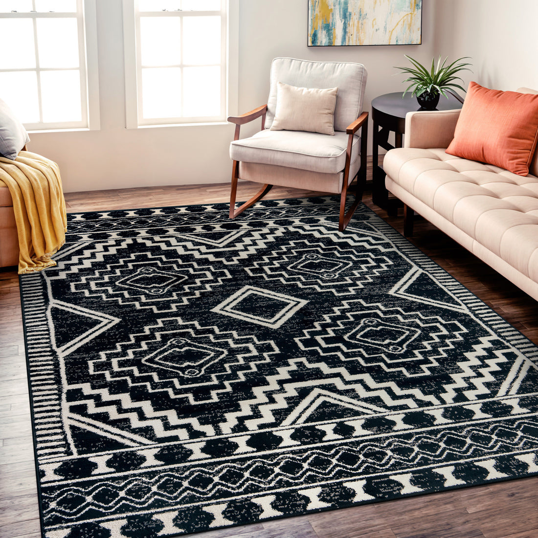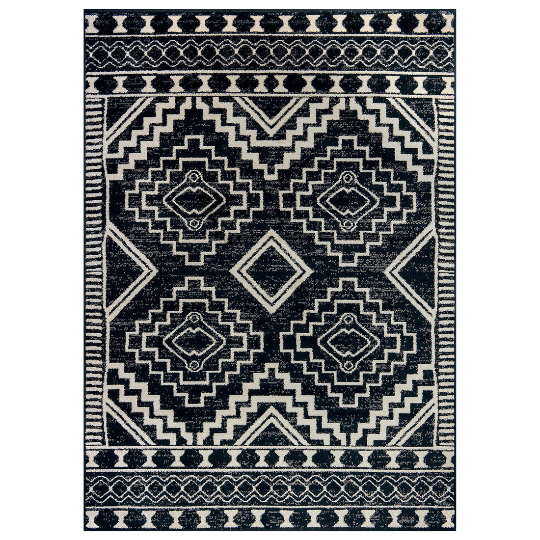 Geometric Bohemian Indoor Area Rug - BLACK 5'x7' - Black
