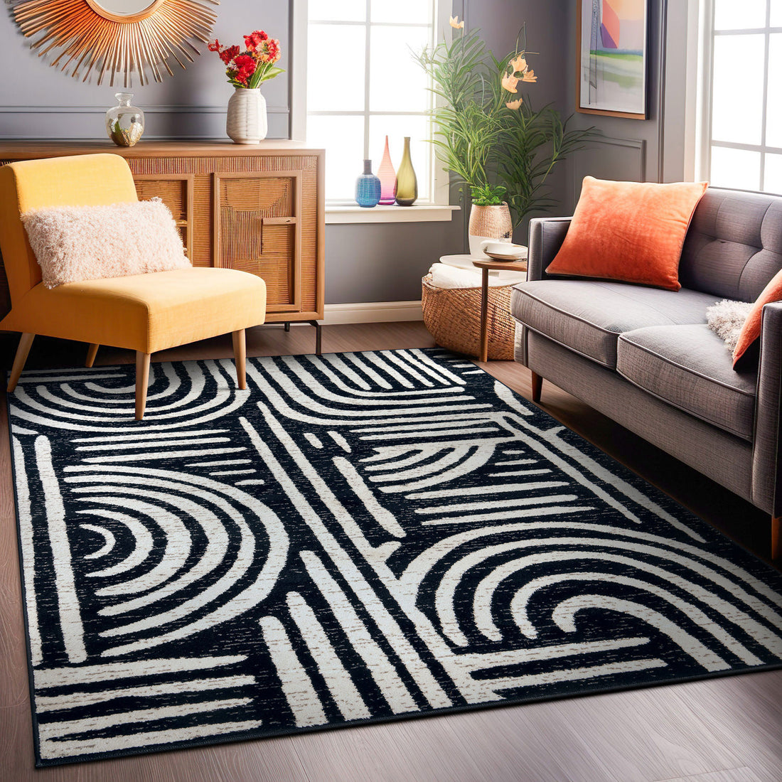 Contemporary Arch Design Indoor Area Rug - BLACK 5'x7' - Black