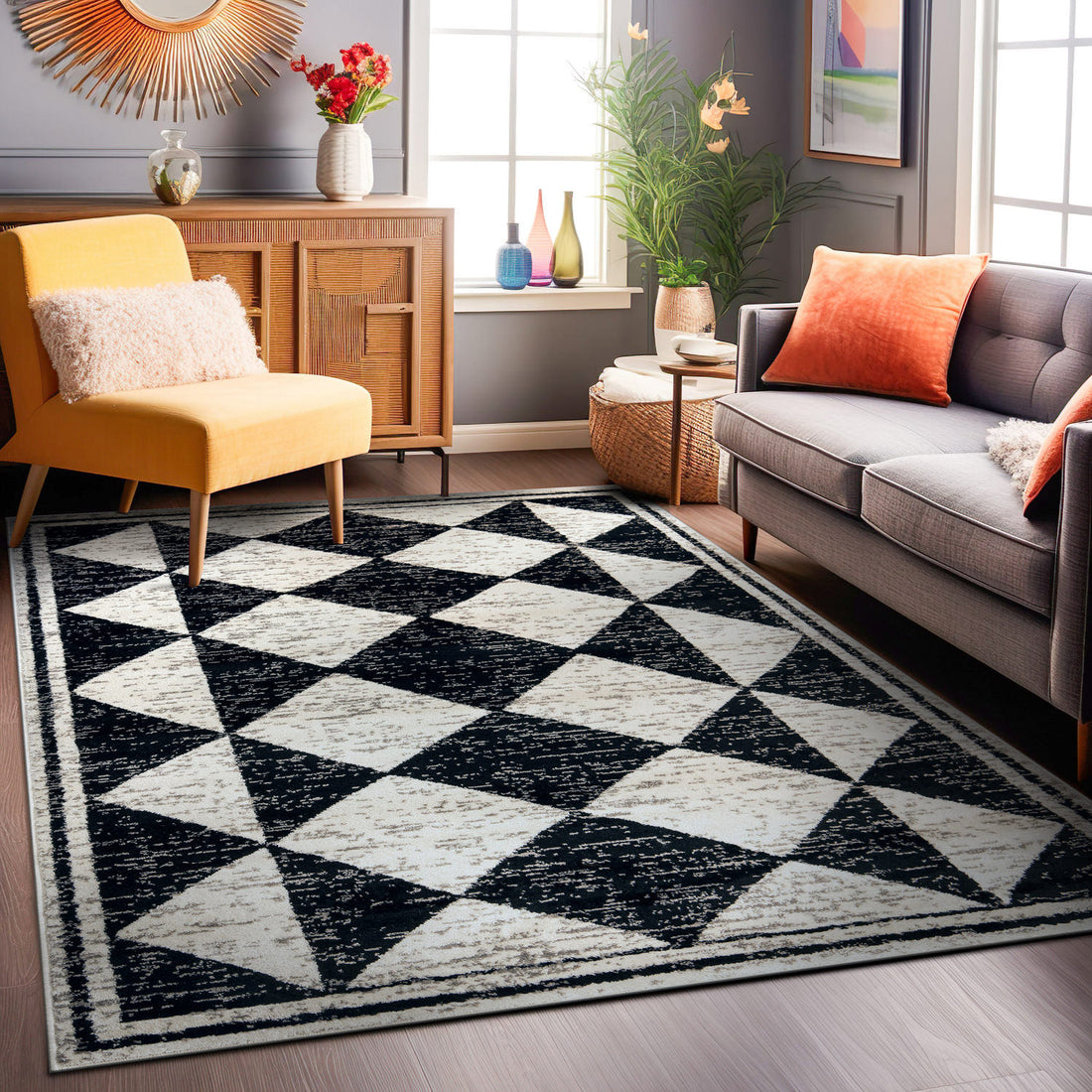 Contemporary Checkered Indoor Area Rug - BLACK 5'x7' - Black