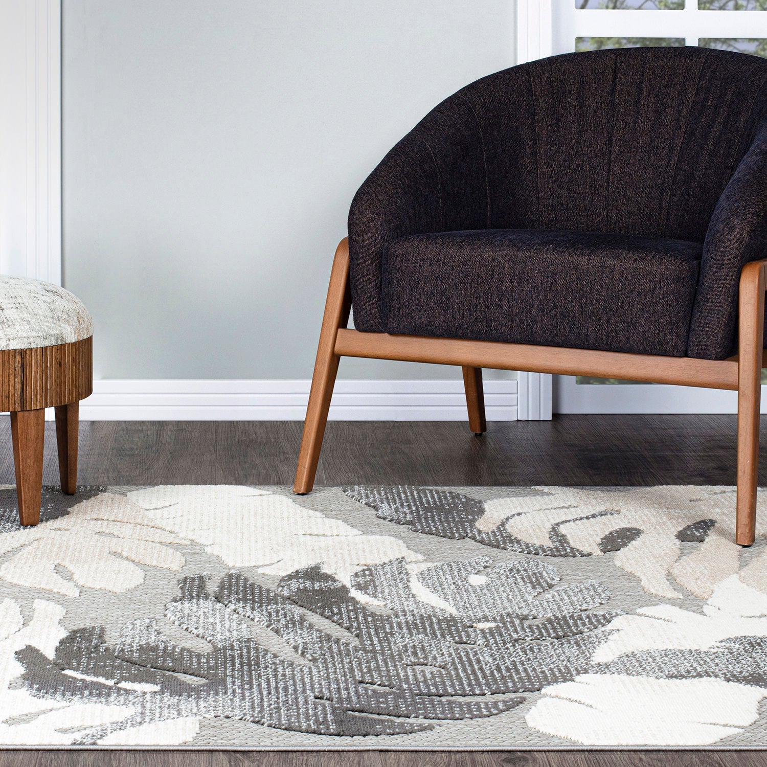 The World Rug Gallery Arles Palm Floral Leaves Indoor/Outdoor Area Rug in Gray 5' x 7' is an exceptional addition to any living space. The rug's sophisticated design features palm floral leaves that exude elegance and tranquility, adding a touch of nature to both indoor and outdoor settings. The gray color palette complements various decor styles, making it a versatile and timeless choice.