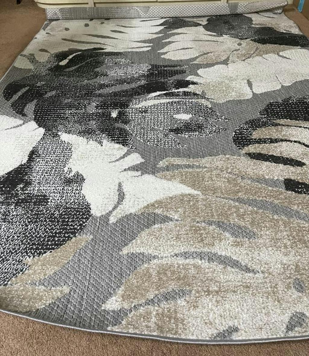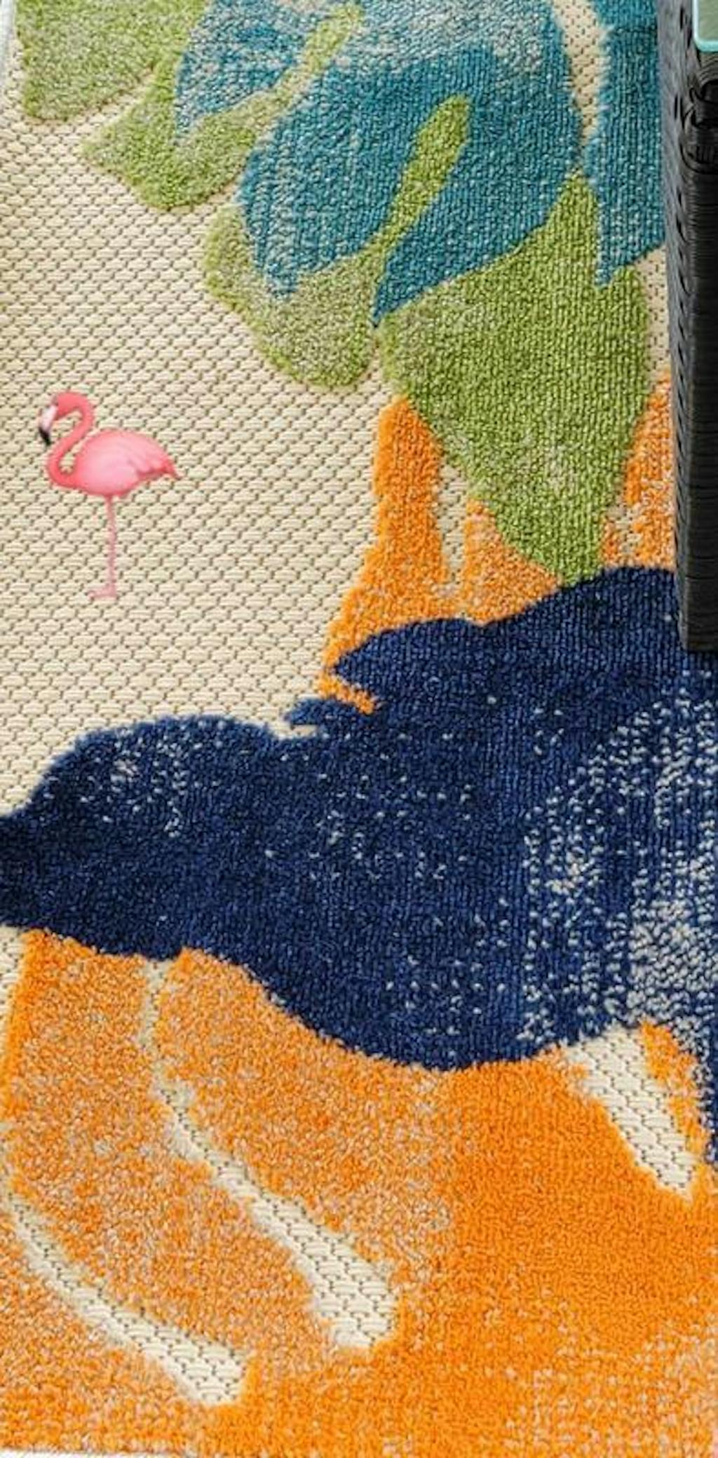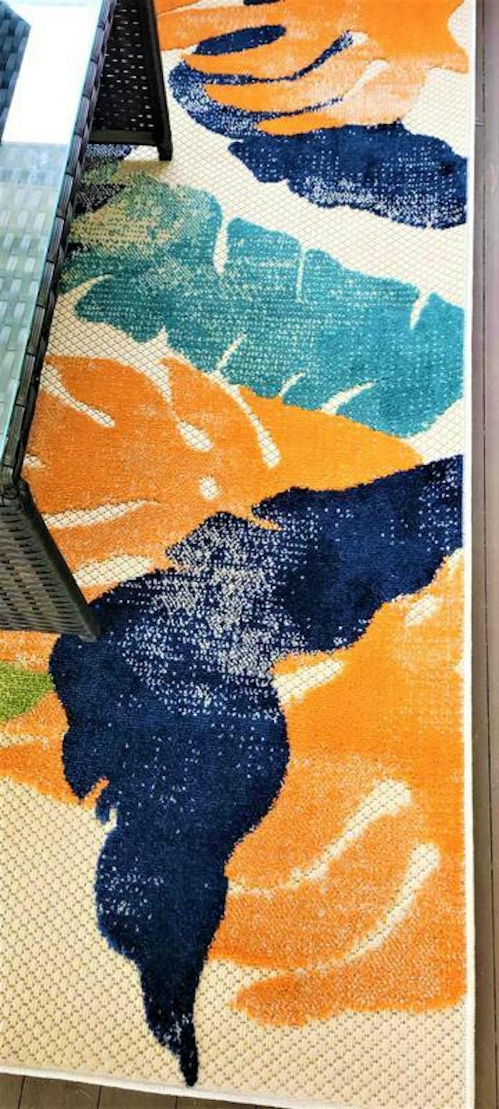 Unroll this mesmerizing rug in or out of your home. The modern contemporary design accompanies sleek large floral pattern and vivid colors. The durable pile height allows it to be cleaned quickly and effectively. Made with 100% polypropylene fibers, this rug epitomizes convenience, persistence and allure.For indoor or outdoor use.This collection offers area rugs that are suitable for all indoor/outdoor spaces.