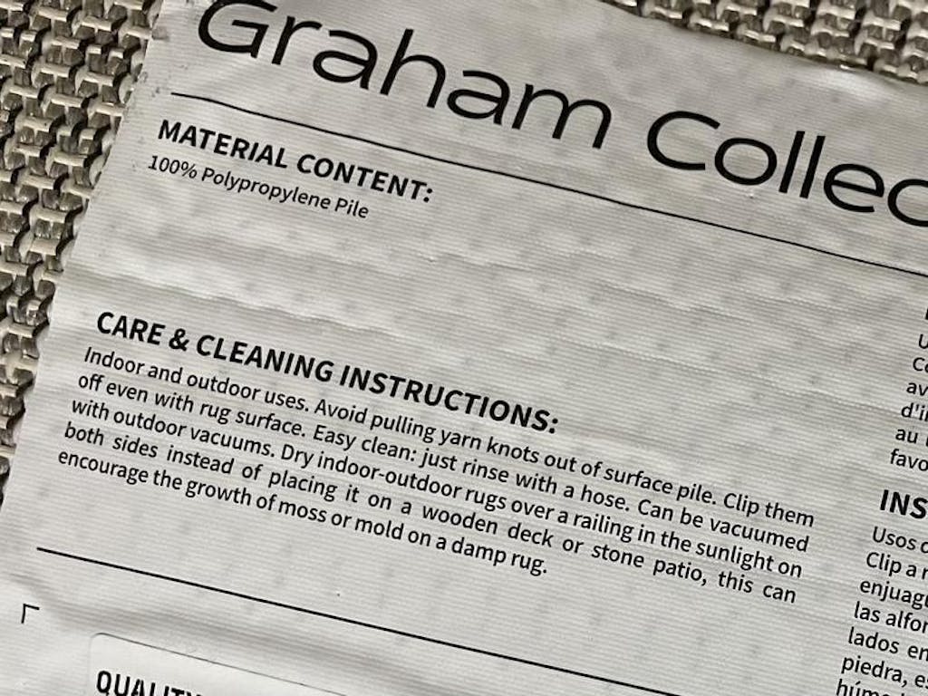 • Easy Care: These stain resistant rugs are easy to maintain. When spills and accidents occur, blot the stains, rinse with a hose, sweep or use a leaf blower to remove dirt.