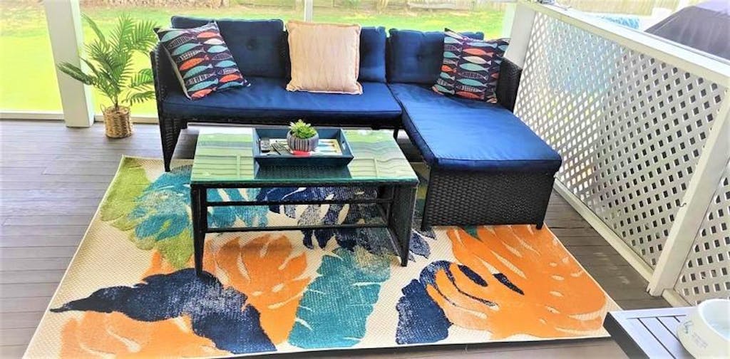 • Indoor/Outdoor rugs designed with resilience against everyday wear-and-tear, this rug is kid and pet friendly and perfect for high traffic areas of your home such as patio, deck, screened-in porch, living room, dining room, bedroom, entryway, nursery, kid's room, playroom, dorm room, study, or home office.
