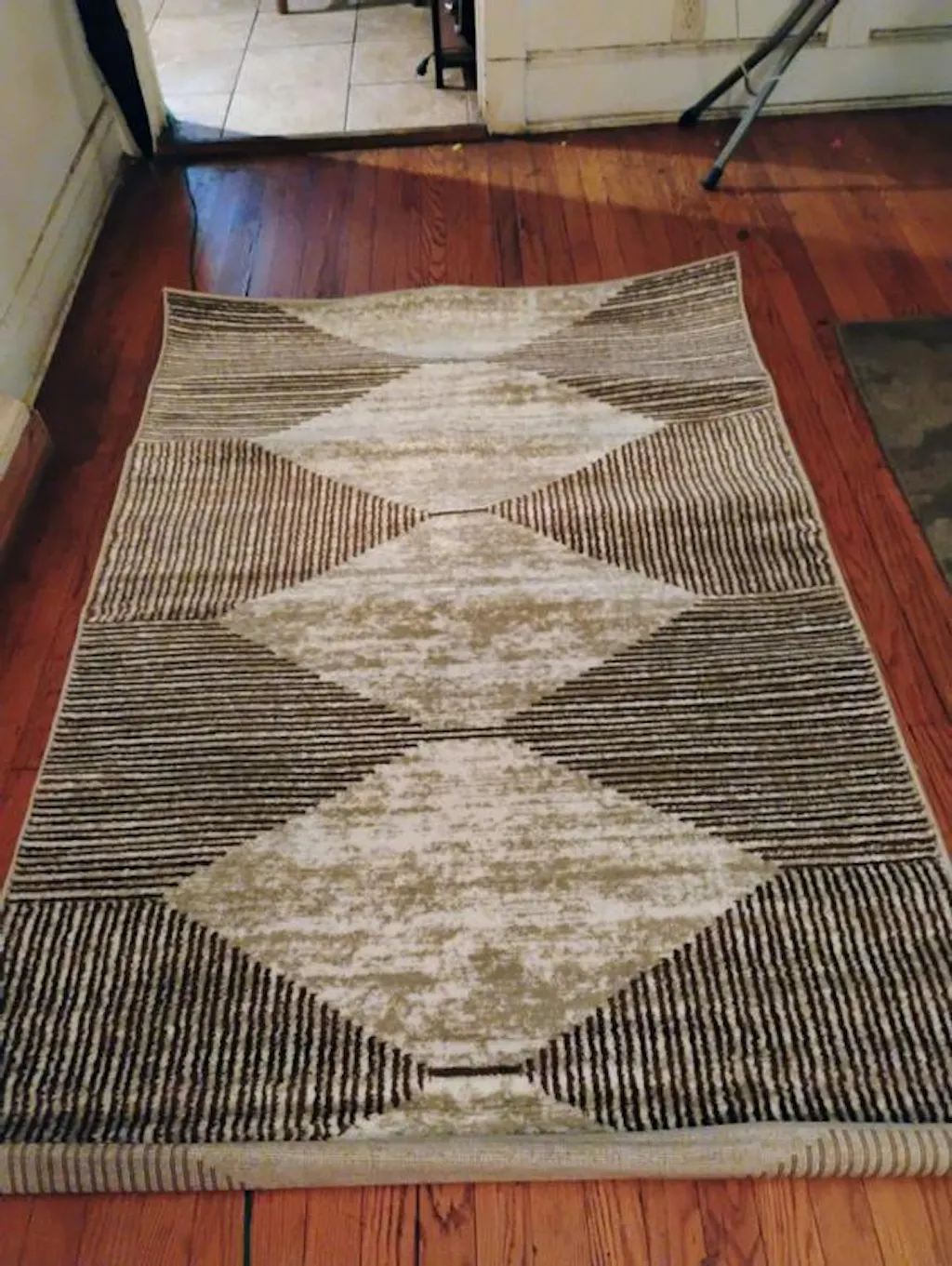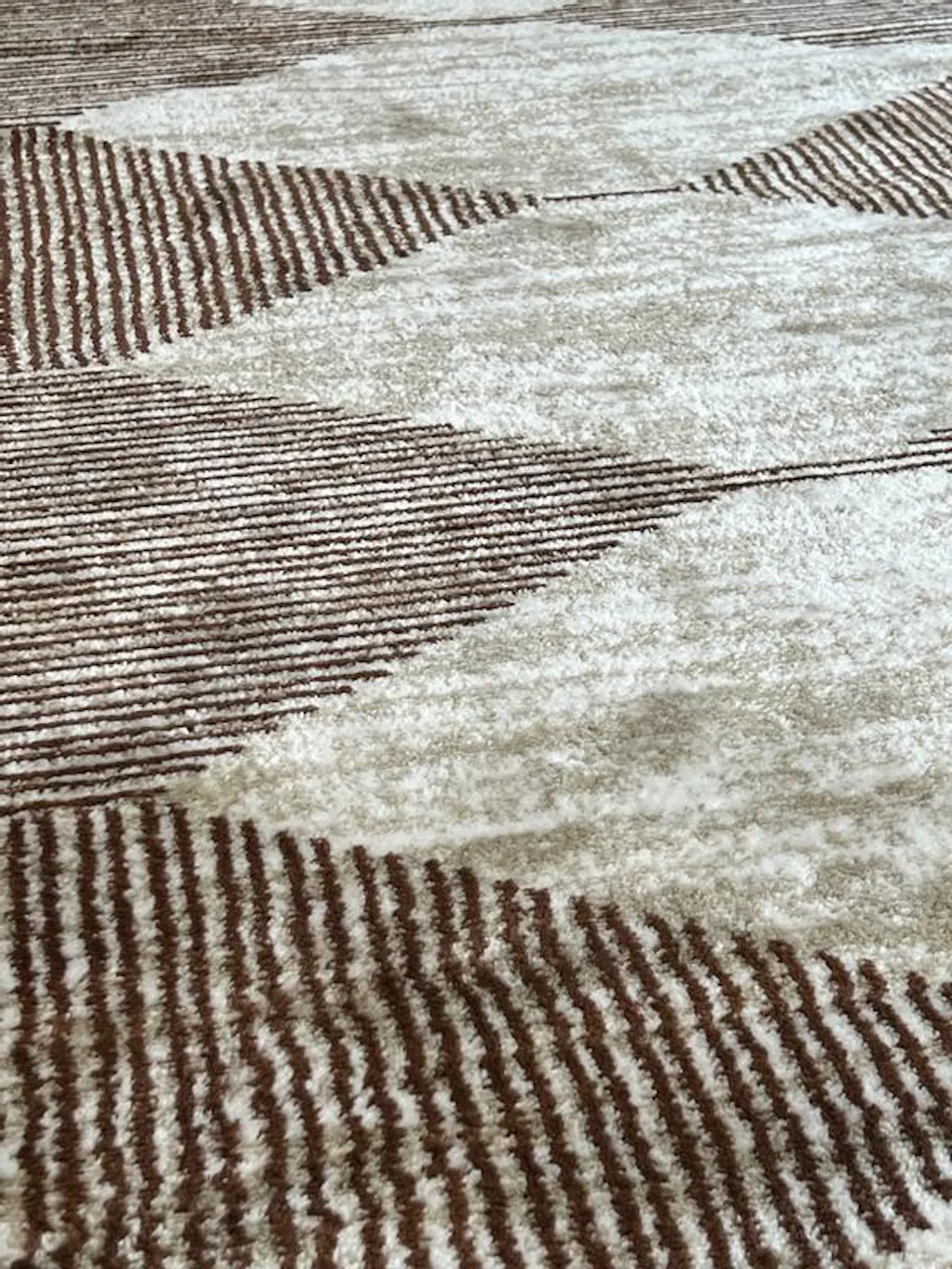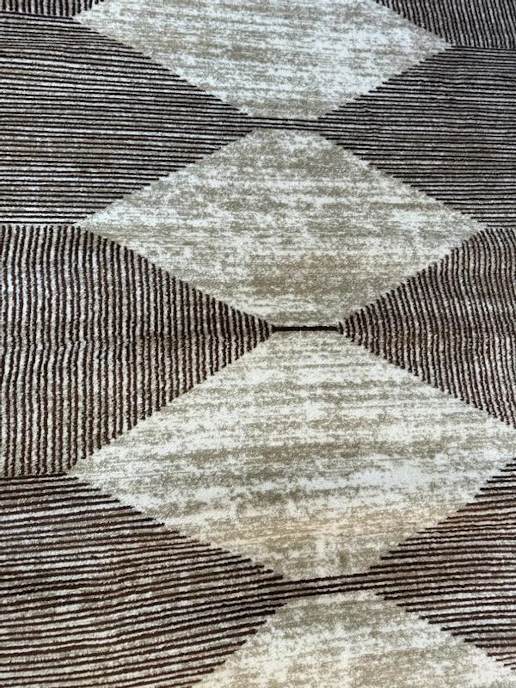 Bring natural texture and structure to your space with this beige and brown geometric area rug. The layered diamond pattern and linear stripe detailing give it a clean, grounded aesthetic perfect for modern, transitional, or earthy interiors. Power-loomed from 100% polypropylene and supported by a jute backing, this rug offers soft durability and easy care. With a 0.39" low pile height, it's ideal for high-traffic areas and furniture-friendly layouts.
