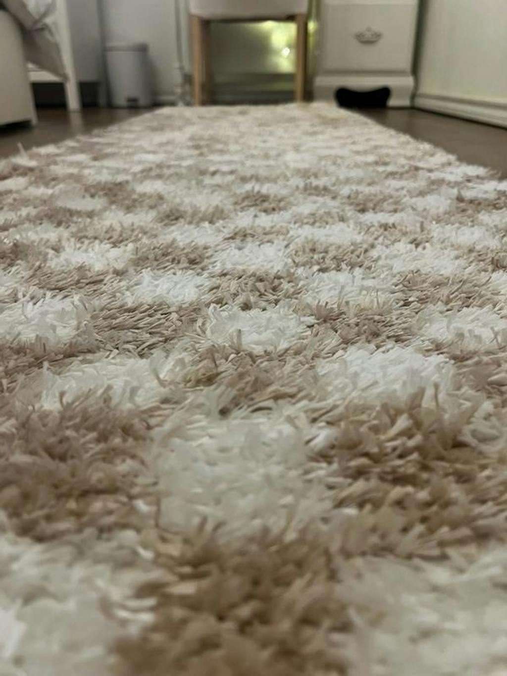 Block Shag Rug – Great for Living Room, Bedroom, or Entryway – Medium Pile, Easy to Clean - Beige