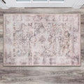 The bohemian distressed vintage rug in cream by World Rug Gallery looks nice. The 21x3 was the perfect size for right inside my front door. It definitely looks distressed maybe so much so the label should say severely distressed.