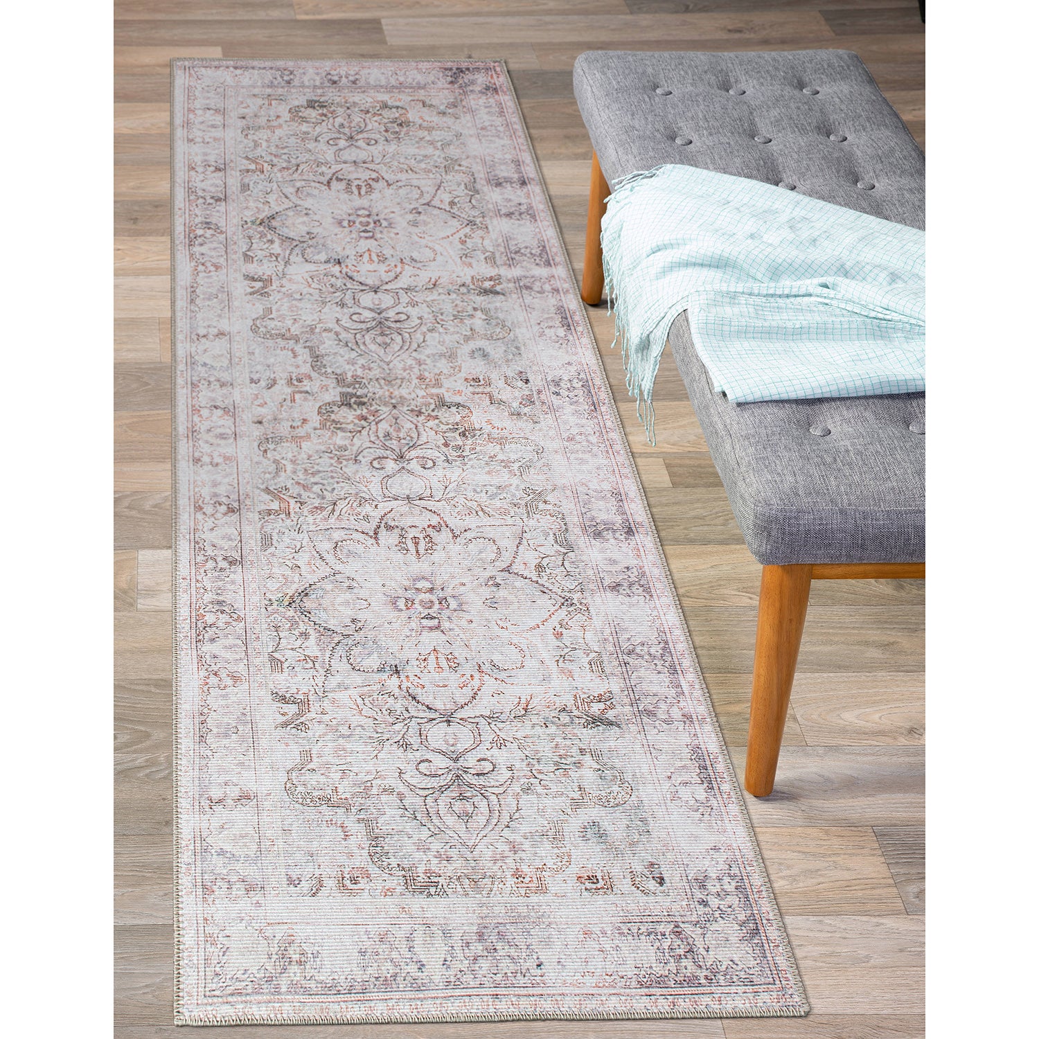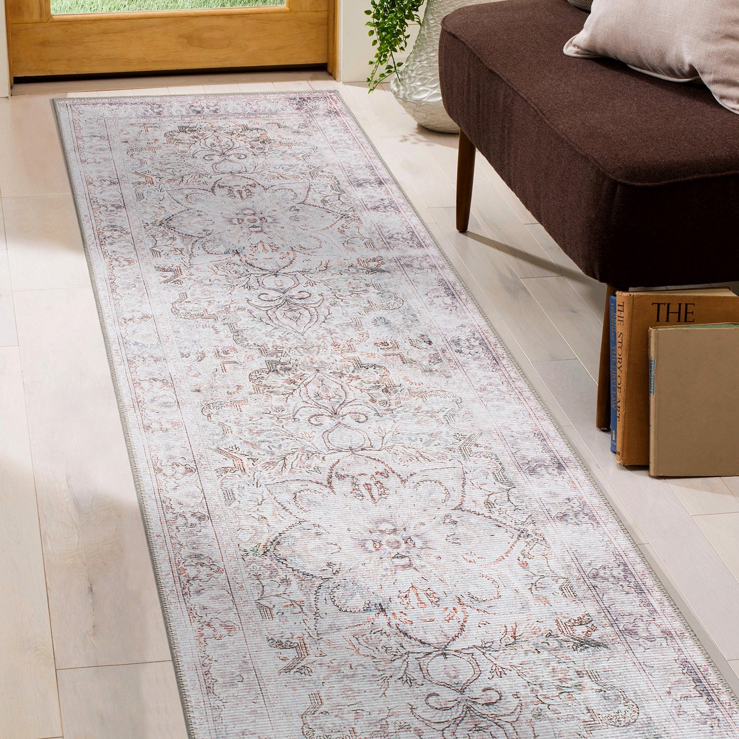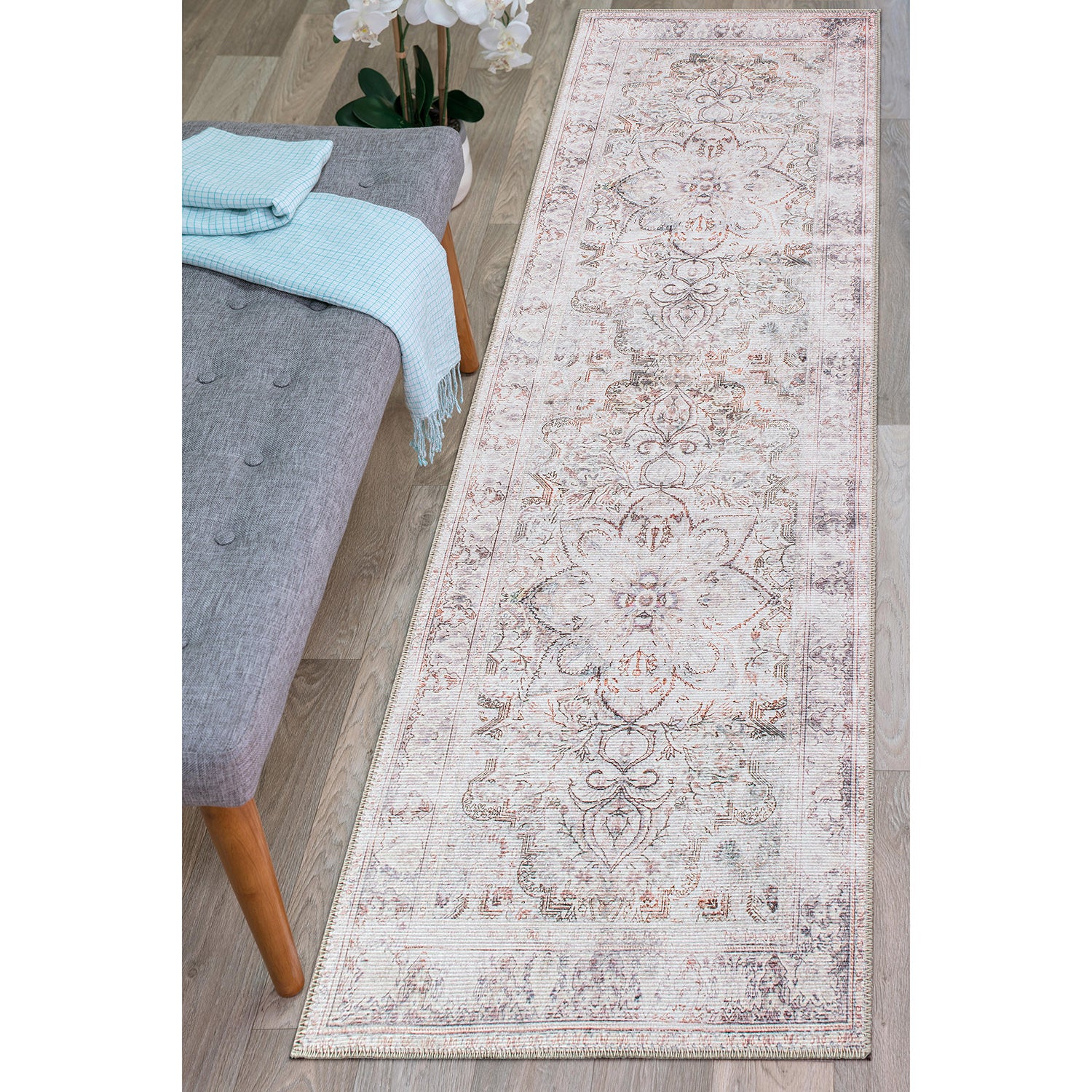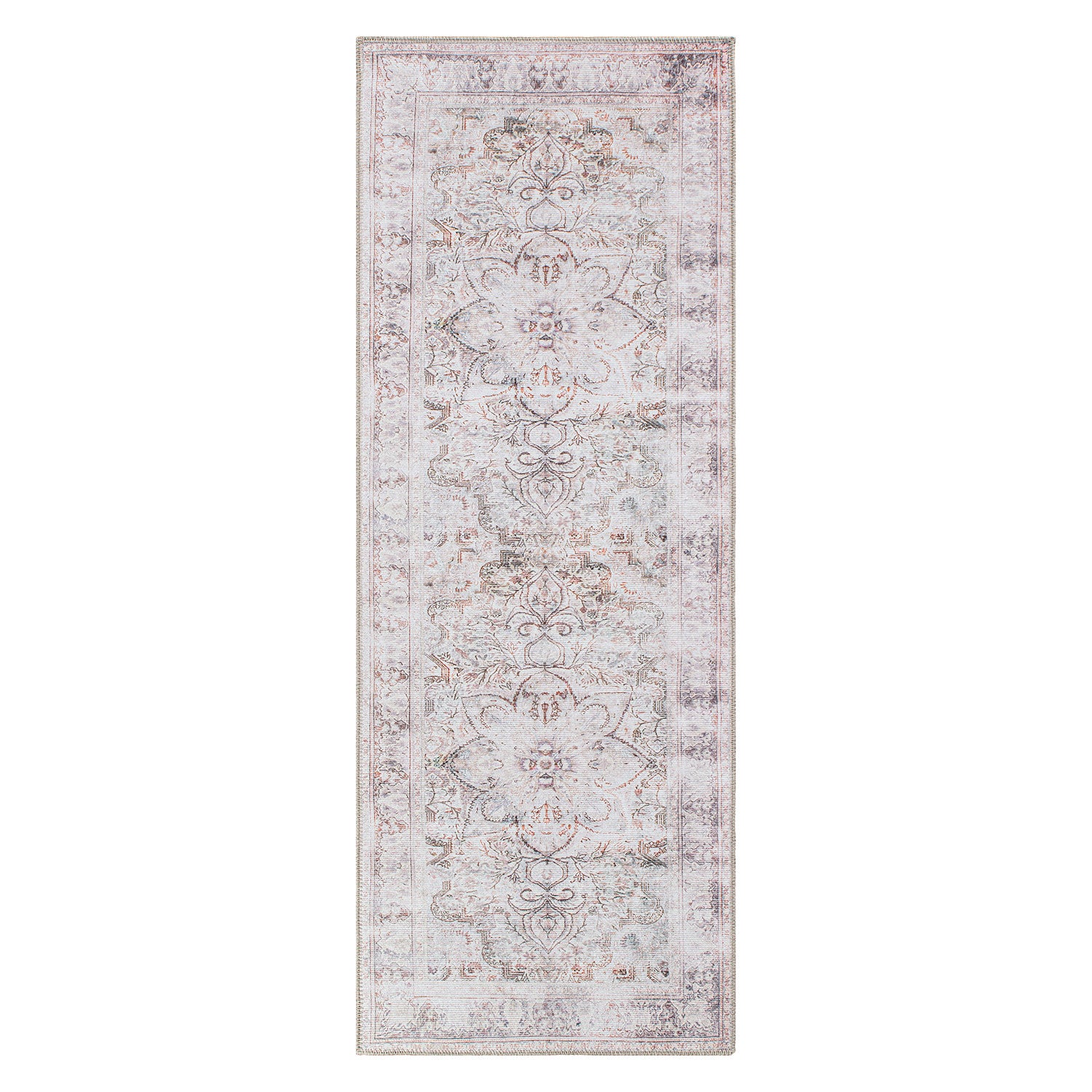 Upon receiving this runner/rug, my initial thought when pulling it out of the package that it had much more of a pink hue than expected from the photos. I was a bit turned off by that at first, however when placed it ended up working ok in the space. The runner itself is thinner & not very plush, however that is what I was looking for in this area. I haven't washed it yet, though it says I can which is another positive for me.