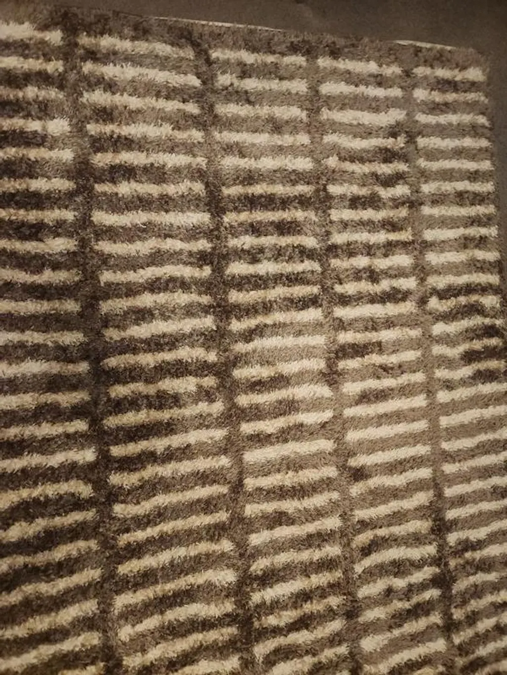 Bohemian, Contemporary style. Style your light-filled open spaces with this Bohemian Stripe Lines shag rug featuring a cozy medium pile. The soft Bohemian Stripe Lines pattern adds inviting texture that families love. This version comes in crisp White. Its Bohemian Stripe Lines design and medium pile provide a stylish yet cozy layer for living rooms, bedrooms, or play spaces. This rug brings soft, flowing texture and brightens your space, making it a versatile choice for modern households. Crafted from 100% Polyester with a durable jute backing, it's kid and pet friendly, easy to clean, stain and fade resistant, and no shedding. Vacuum often, spot clean as needed, and rotate periodically for even wear.