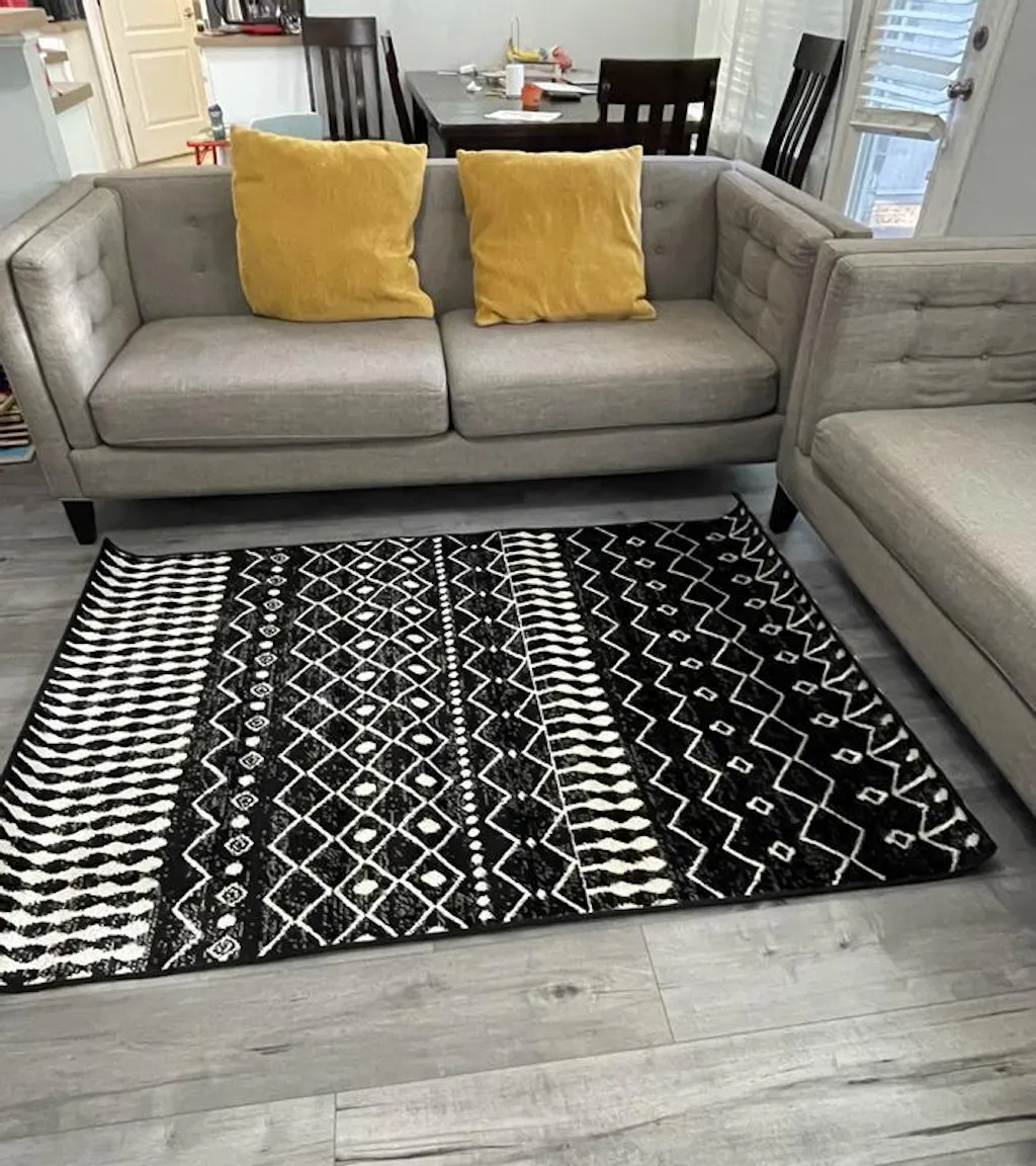 Turn your floor into a work of art with this geometric patterned rug, designed to bring modern aesthetics into everyday living. The bold black and ivory design adds striking contrast, while the 0.39-inch pile height allows for easy integration into any space. Crafted with durable, stain-resistant materials, this rug ensures lasting beauty with minimal maintenance.