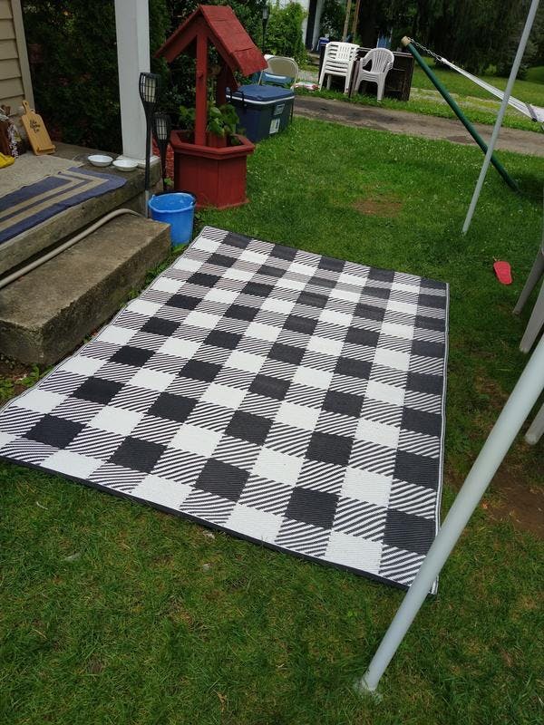 Buffalo Plaid Reversible Plastic Indoor and Outdoor Picnic Mat, Camping Rug, RV Rug - Black