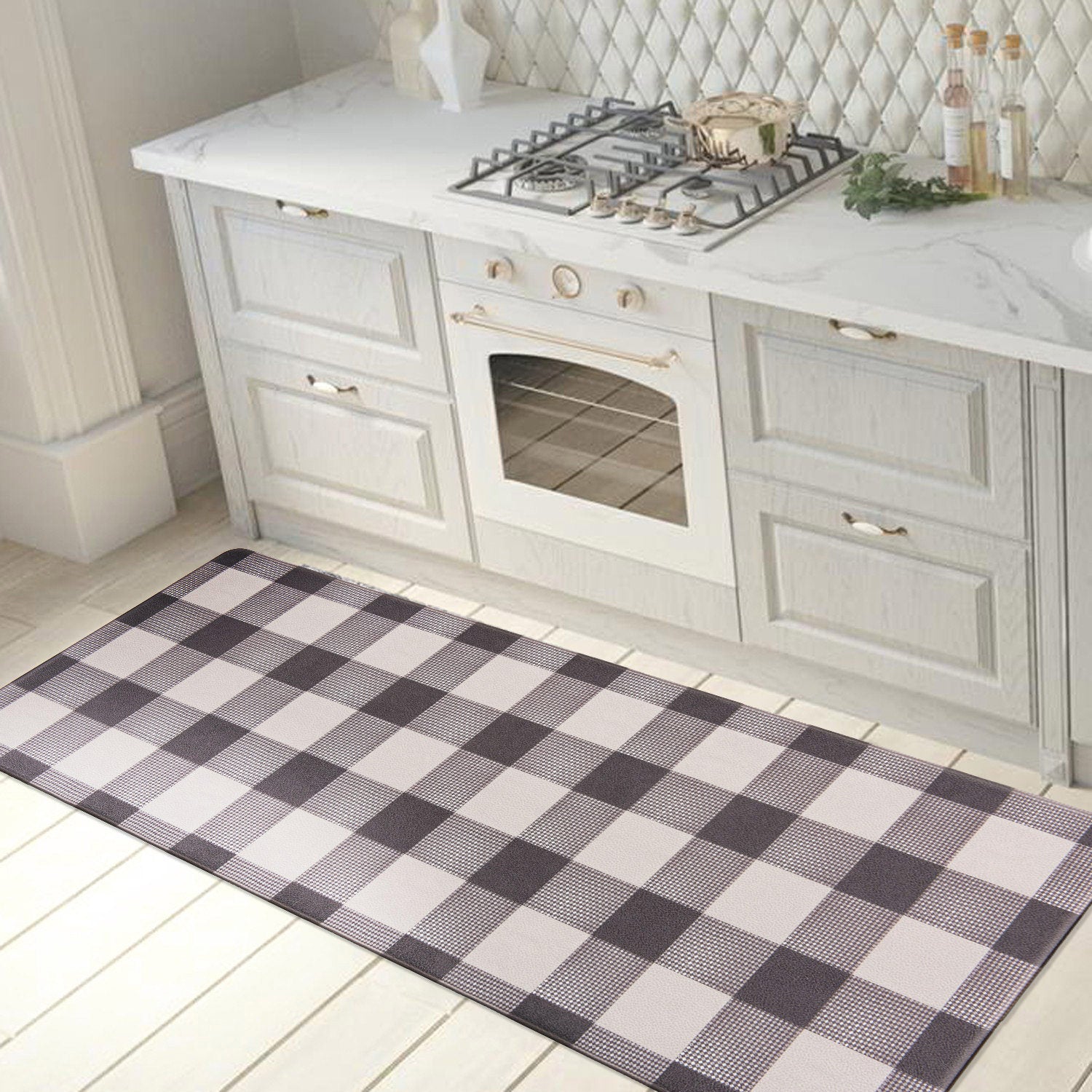 Multi-purpose:Kitchen mats widely used for home decor,indoor front welcome mat,kitchen rug,laundry room,standing desk,back doors,garage,office. Nonskid backing holds the mat in place for extra safety.