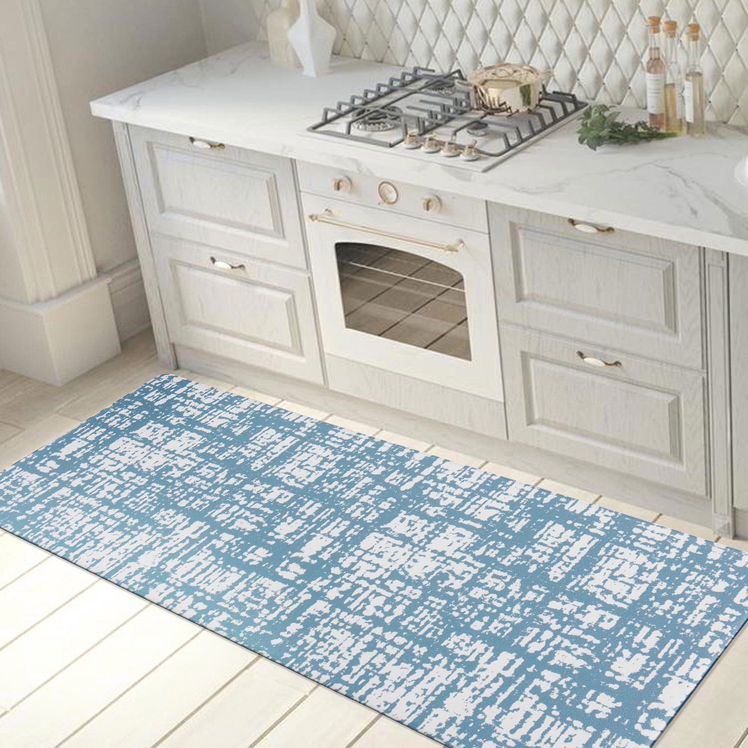 Multi-purpose:Kitchen mats widely used for home decor,indoor front welcome mat,kitchen rug,laundry room,standing desk,back doors,garage,office. Nonskid backing holds the mat in place for extra safety.