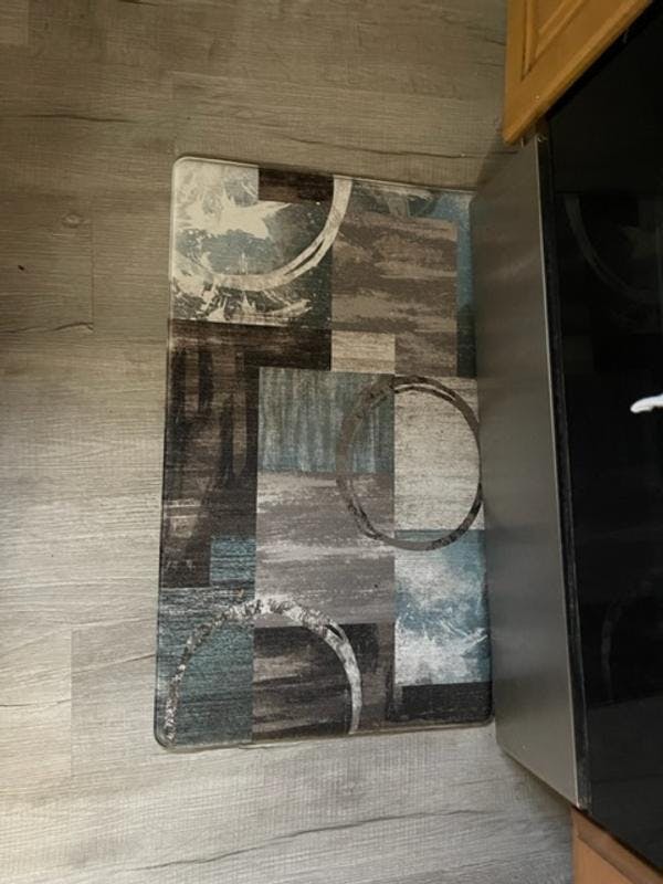 I’ve been looking for an anti fatigue mat for the kitchen for a while now. Slowly changing out my husband’s old/outside items for new ones. I wanted a mat that wasn’t a solid color to add color into the room. This turned out to be perfect. My husband even likes the colors! It really helps add color into the kitchen in a contemporary way.
