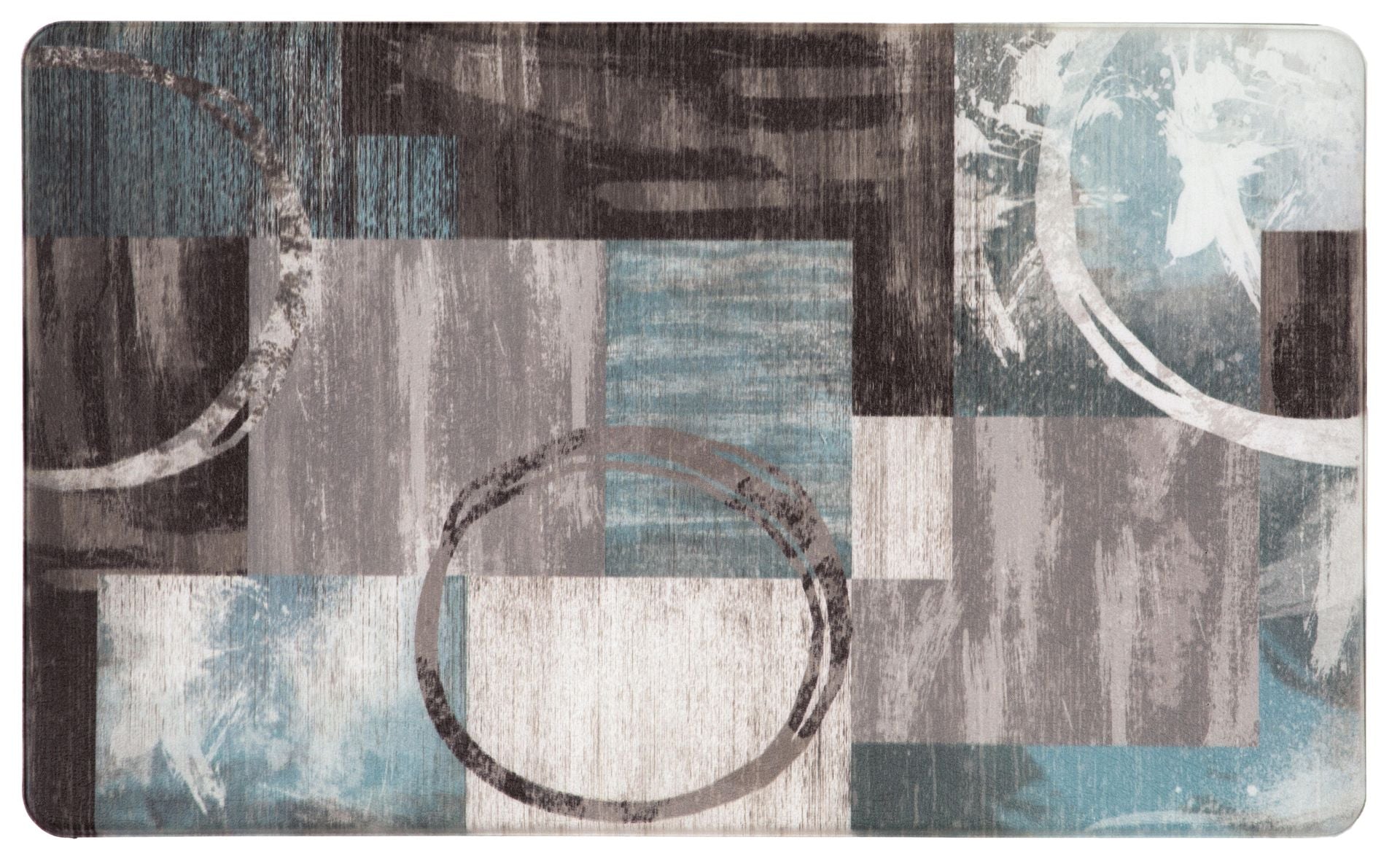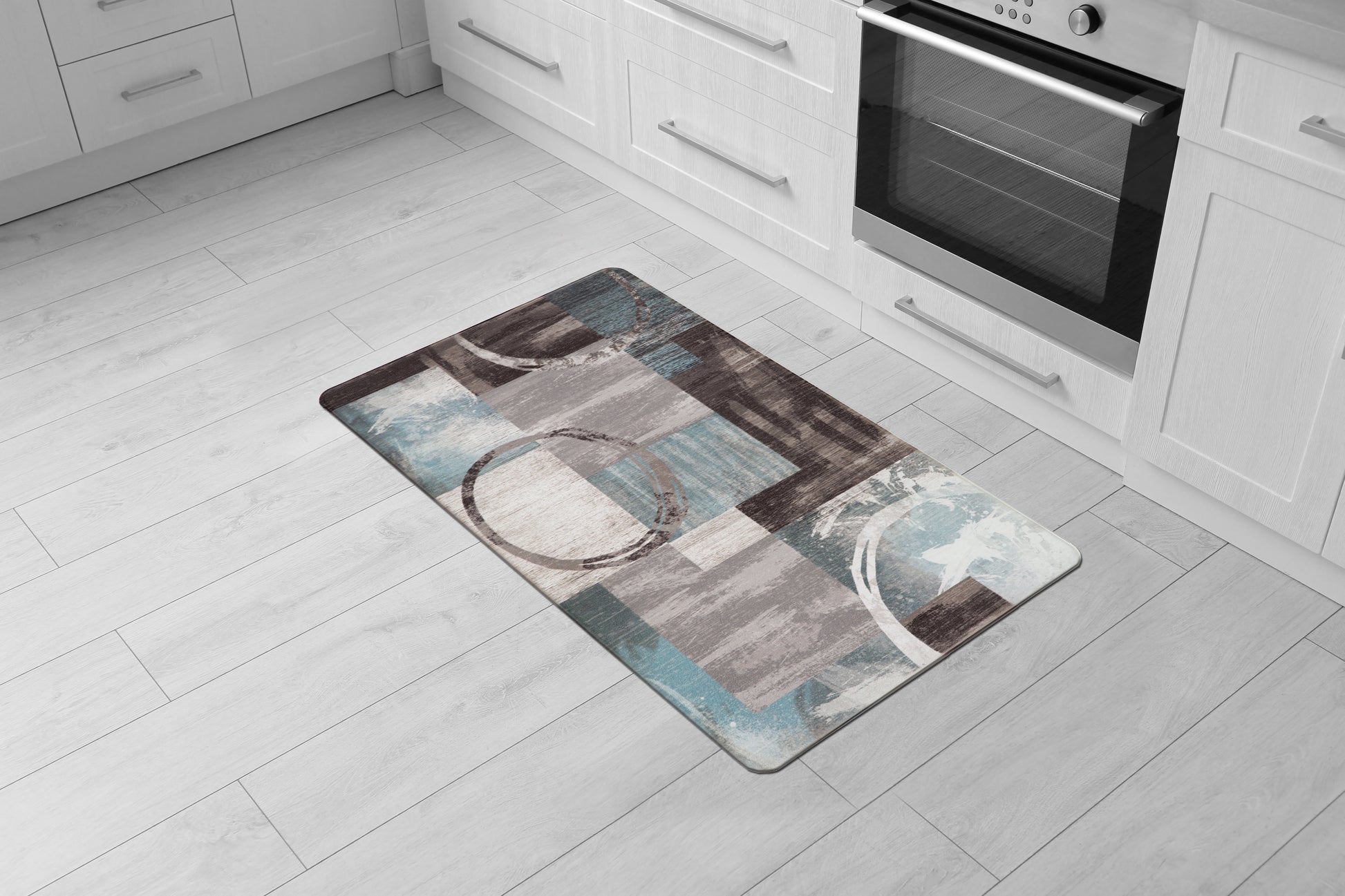 I Love the World Gallery Contemporary Abstract Circles Anti Fatigue Standing Mat is so comfortable to stand on doing dishes, preparing or cooking . Very well made and soft you have to get one to really feel the comfort I would most definitely recommend getting one or more you will Love it I know I Love mine