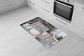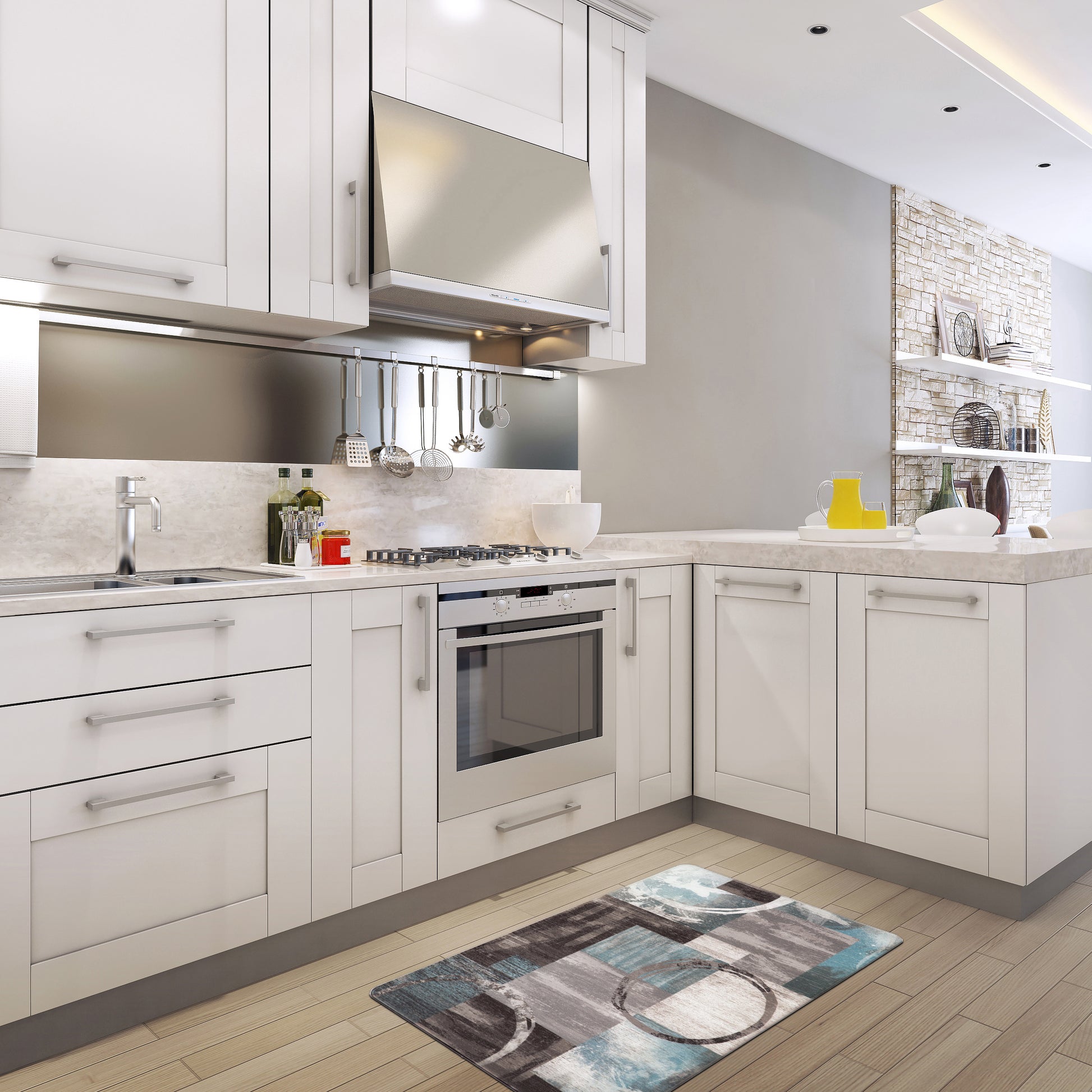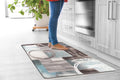 I love the design on the mat very abstract. Got this mat for my kitchen and the design fits in perfectly and helps keep the floor clean.