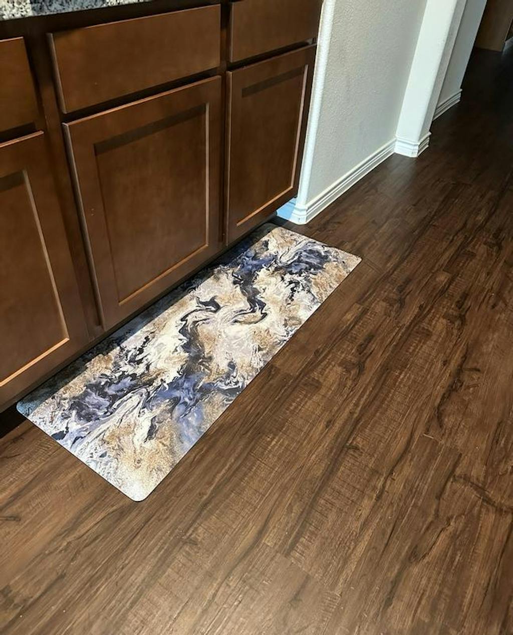 Elevate your décor with our Abstract style anti-fatigue mat. Engineered with a 0.79-inch thick cushion for superior comfort, it helps alleviate fatigue during long hours on your feet. The innovative abstract design, characterized by bold lines and vibrant colors, makes this mat a standout piece in any room, while the durable non-slip backing keeps it securely in place.