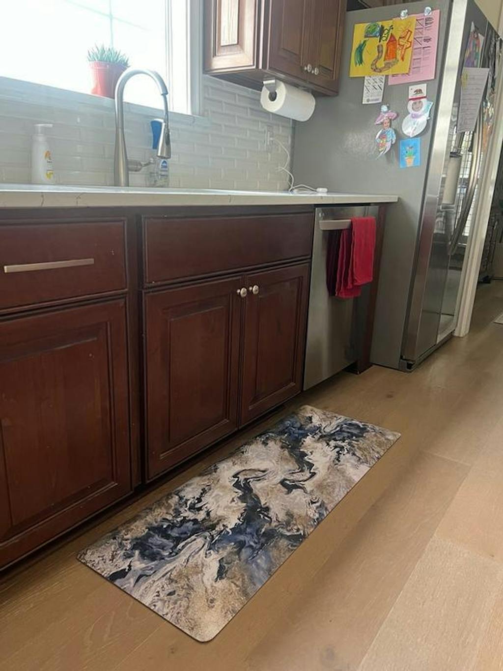• Eco-Friendly & Versatile Use: Crafted from high-quality recycled materials, this mat is an environmentally responsible choice without compromising on comfort or durability. Its simple yet elegant design seamlessly fits into kitchens, bathrooms, laundry rooms, offices, and more, making it a great choice for homes with kids and pets.