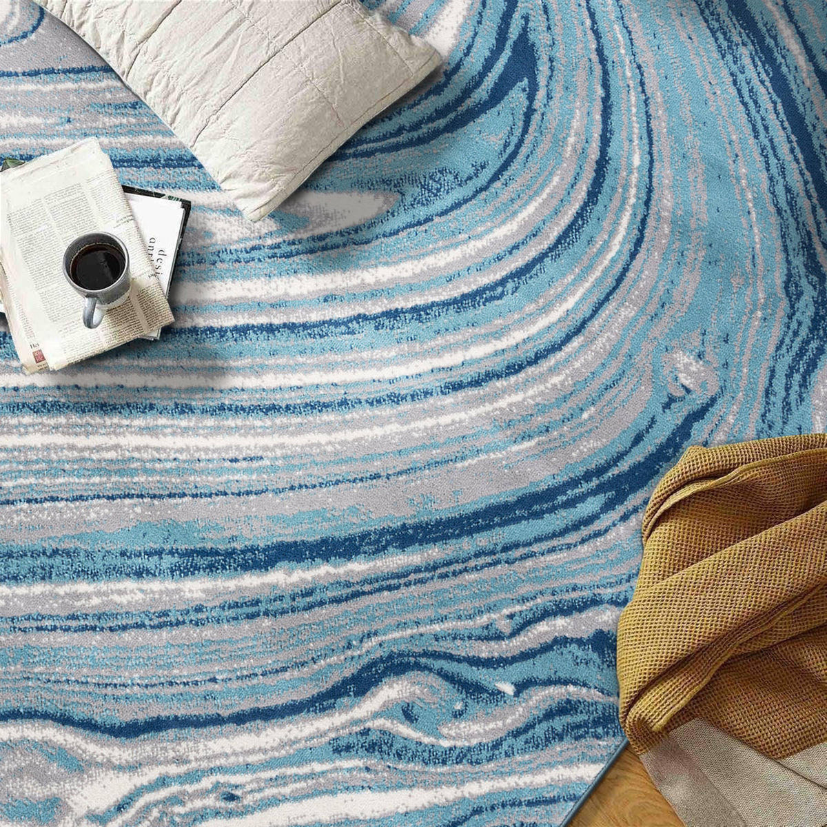 Unroll this modern abstract swirl design rug in any area of your home for a chic and stylish color scheme. With bold colors and different size options, this rug will masterfully elevate your living space.