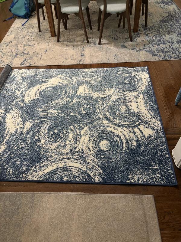 I’m in the middle of rearranging my apartment and am not sure yet where this one will go, but I unrolled it and it goes beautifully with my dining room rug and my hallway runner. The design looks three-dimensional though the rug is all the same pile. It’s a good thickness for insulating sound, so I’m hopeful that my downstairs neighbor will notice a difference with more of my floor covered. I love beautifying my home and can’t wait to see how it all comes together :)