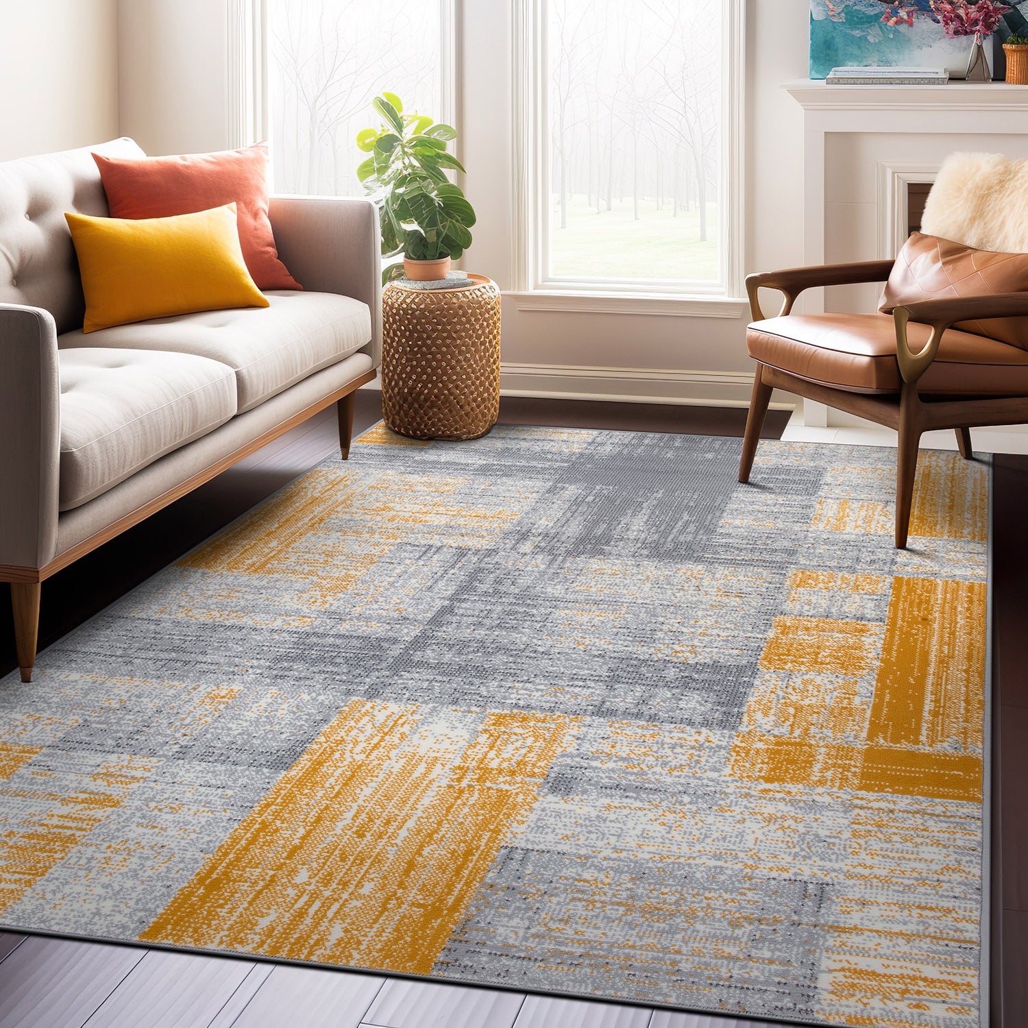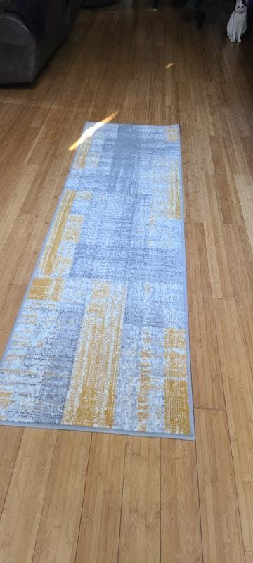 I love this rug! It adds a pop of color and style to my living room. The yellow is bright and cheerful, and the distressed design is modern and chic. The rug is soft and durable, and easy to clean. It looks great with my furniture and decor. I would definitely recommend this rug to anyone looking for a contemporary and affordable area rug.