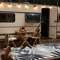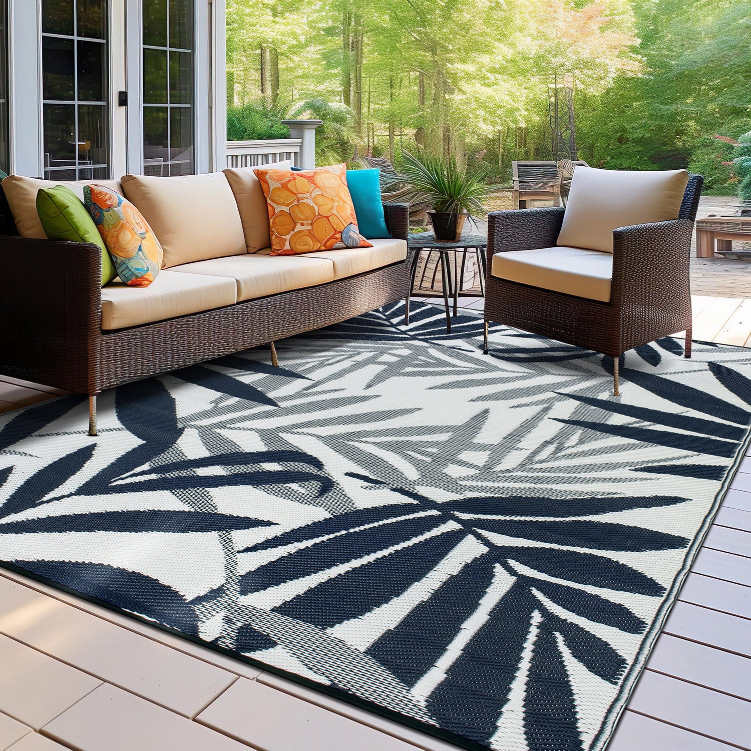This outdoor rug is so beautiful! It is elegant but tough enough for the outdoors. I imagine it will be easy to hose off due to the material it is made of. If is comfortable to stand on and the size of perfect for my deck and table!