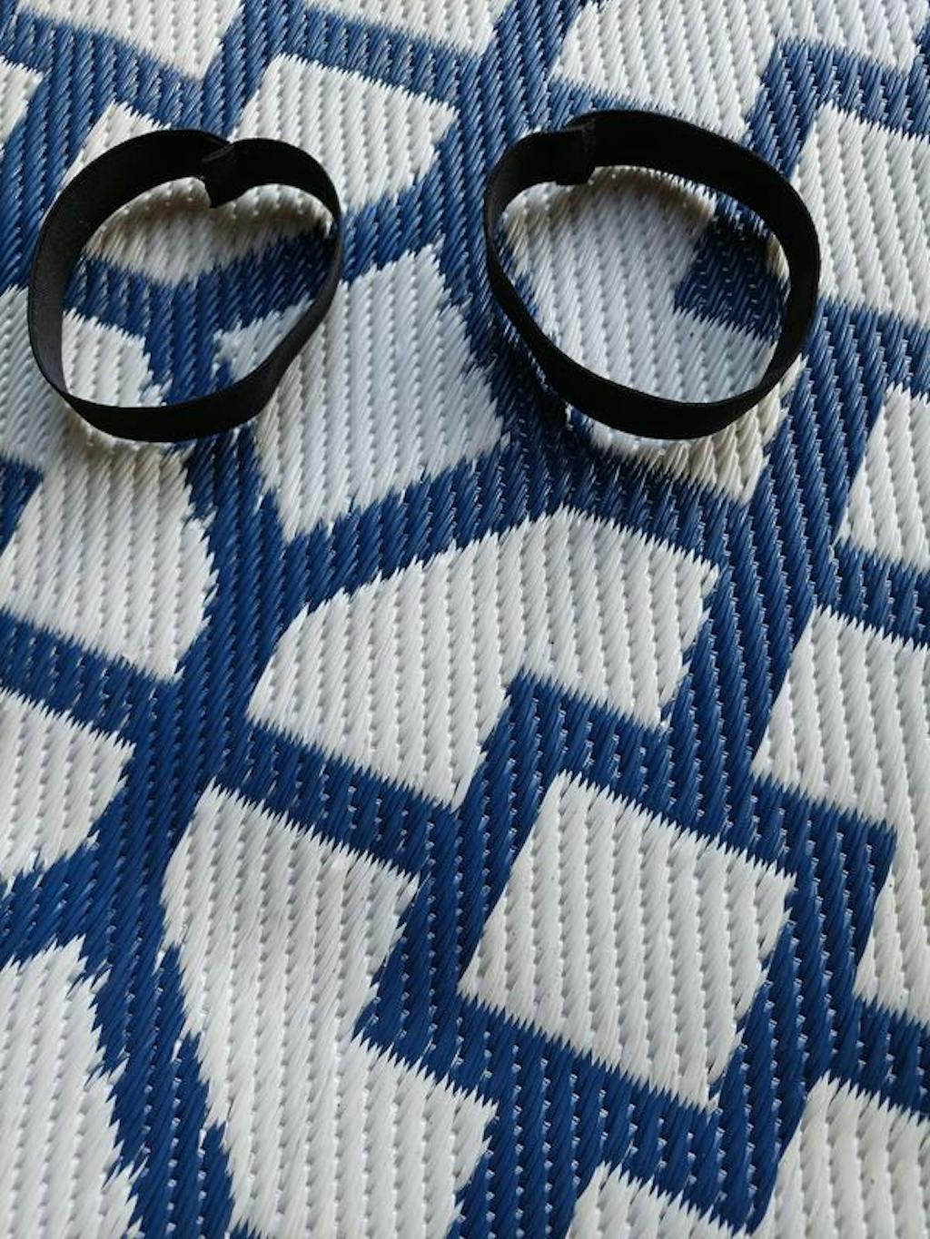 Contemporary Geometric Reversible Plastic Indoor and Outdoor Picnic Mat, Camping Rug, RV Rug - Navy