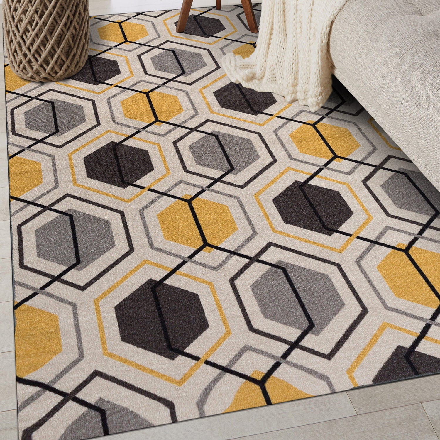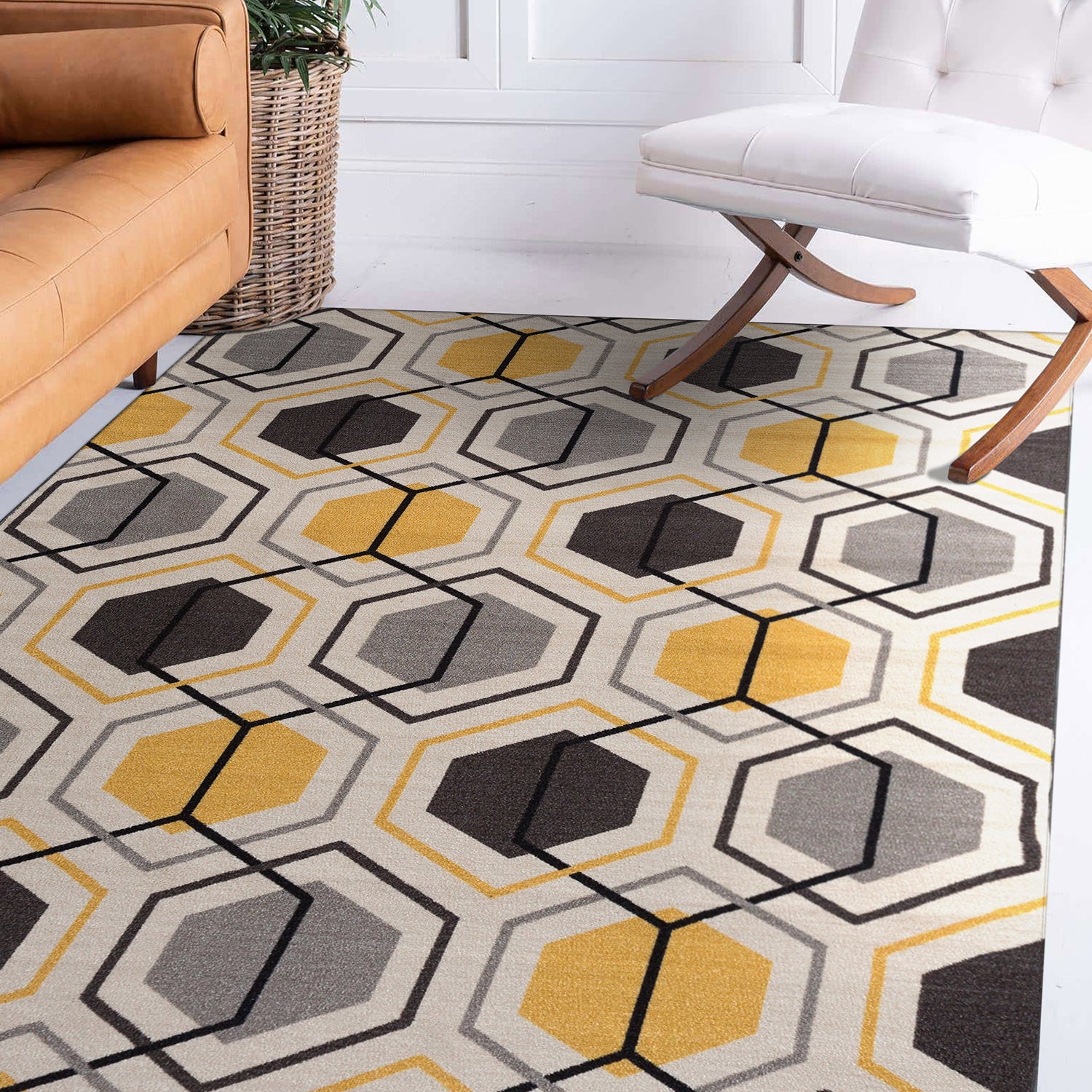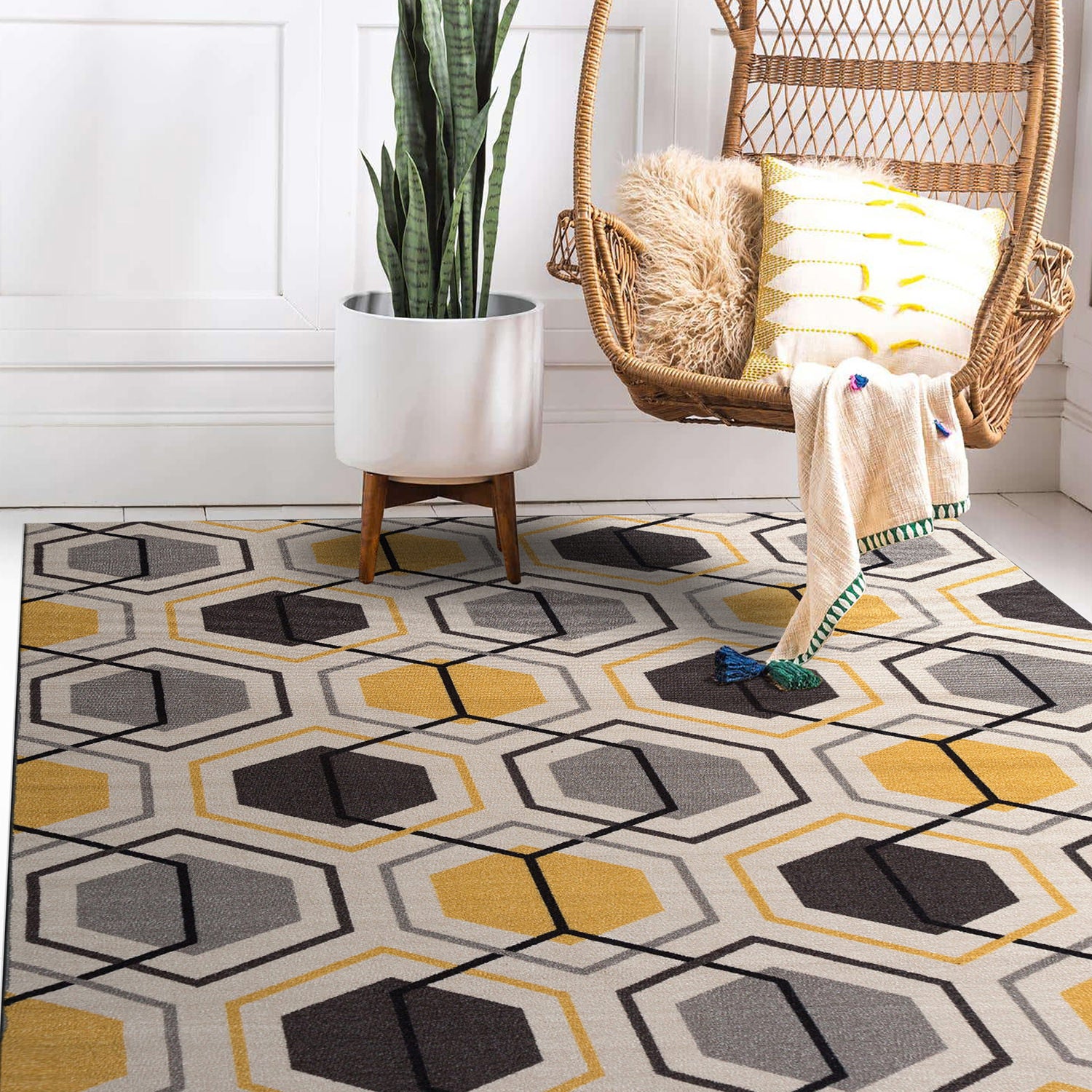 Love this rug! The bold geometric pattern gives my room a modern edge, and the texture feels soft underfoot.