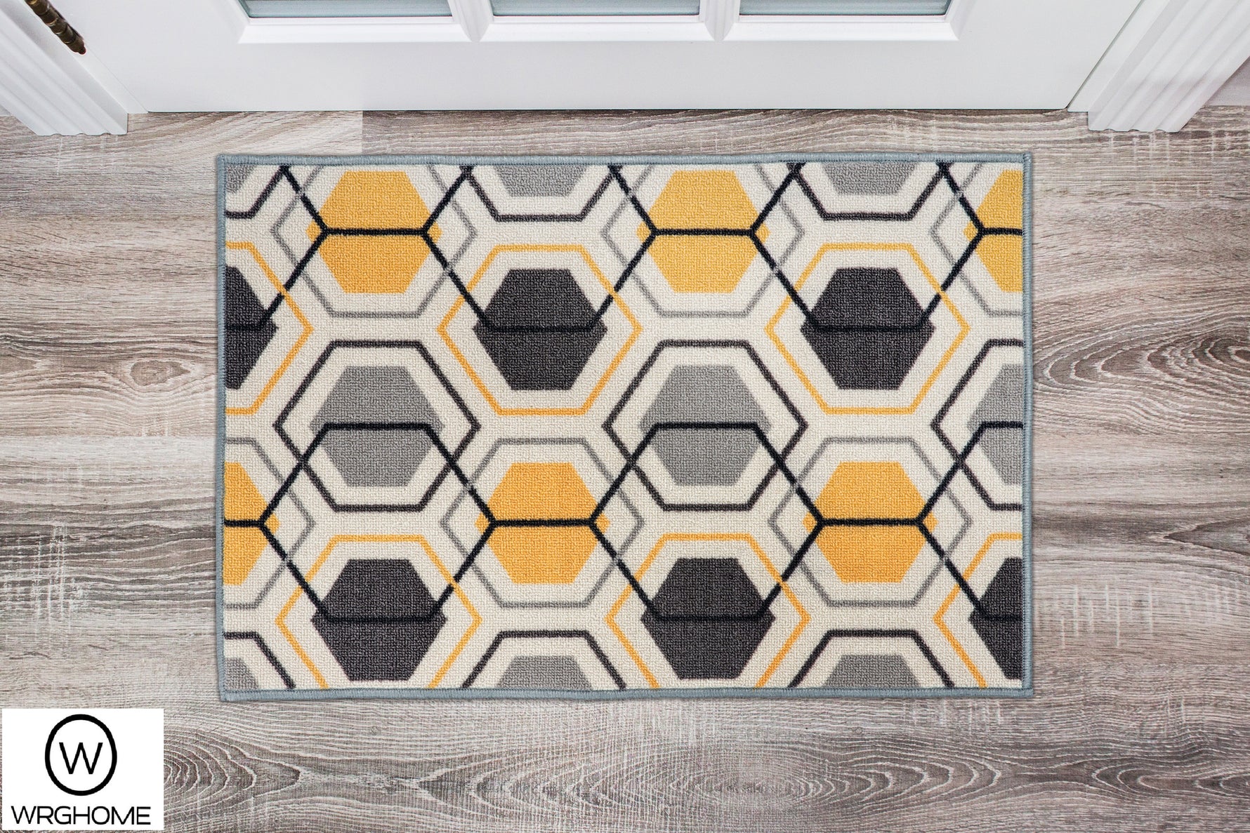 WRGHOME Contemporary Geometric Stripe Non-Slip (Non-skid) Area Rug - Yellow