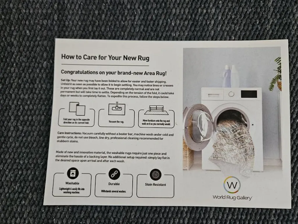 • Elegant in Fiber Texture, flat pile and lightweight rug is stain resistant, water resistant, and is designed to fit conveniently in your home washing machine. Polyester machine made construction ensures exceptional comfort and durability in any room. Available in a variety of area rug sizes: area rugs 8x10, area rug 5x7, 2x7 runner rugs, 2x10 runner rug, 2x3 area rugs, area rugs 3x5, area rug 9x12, area rug 10x14.