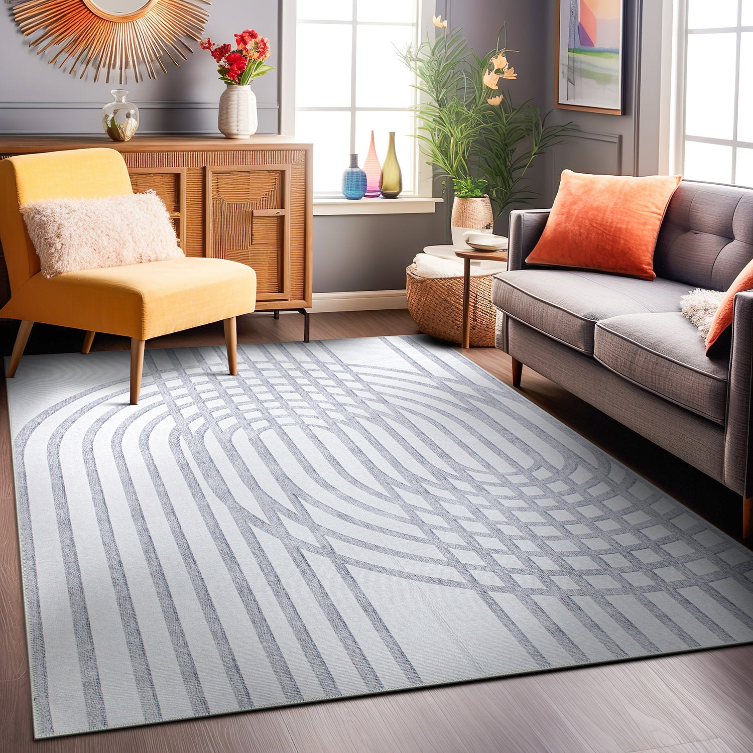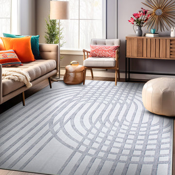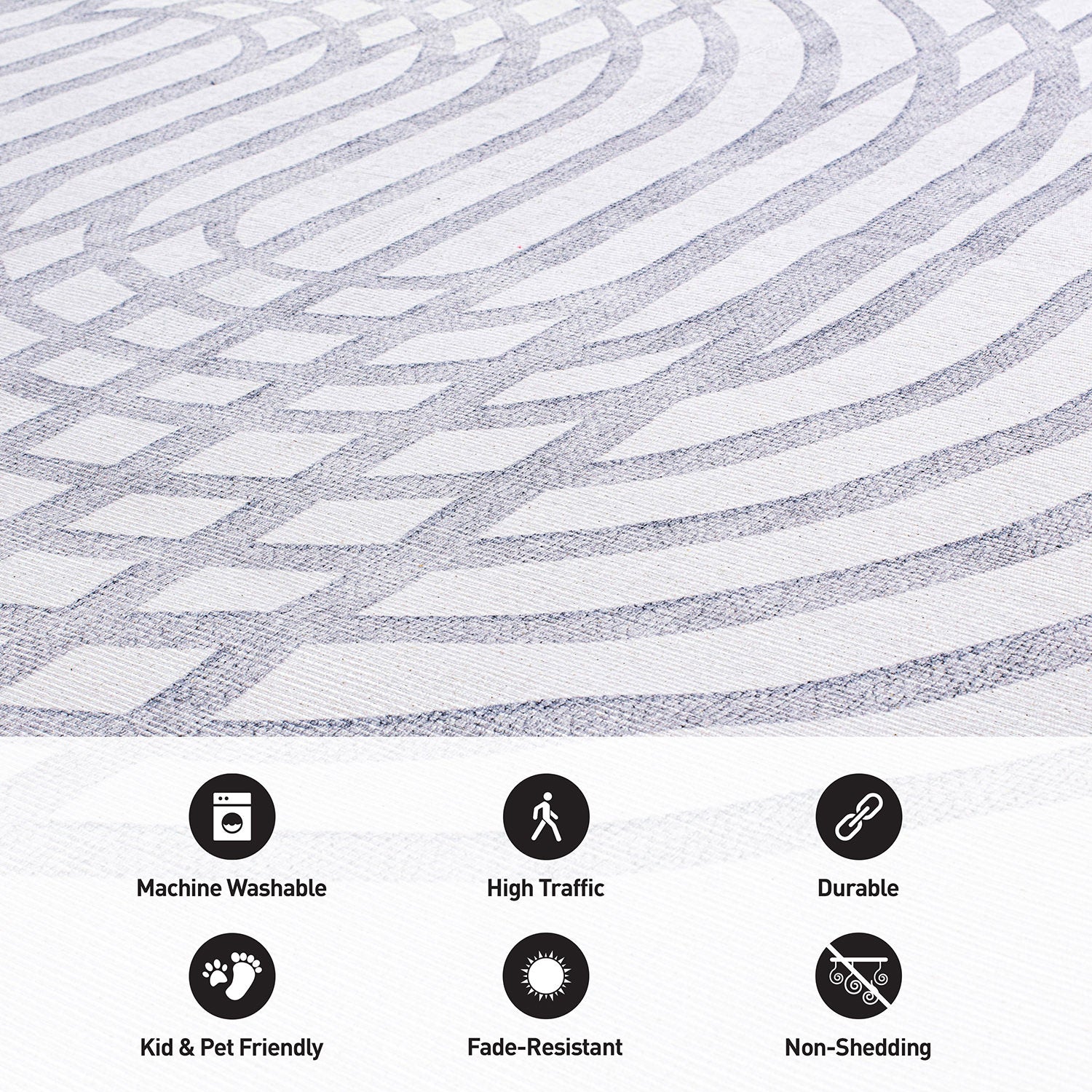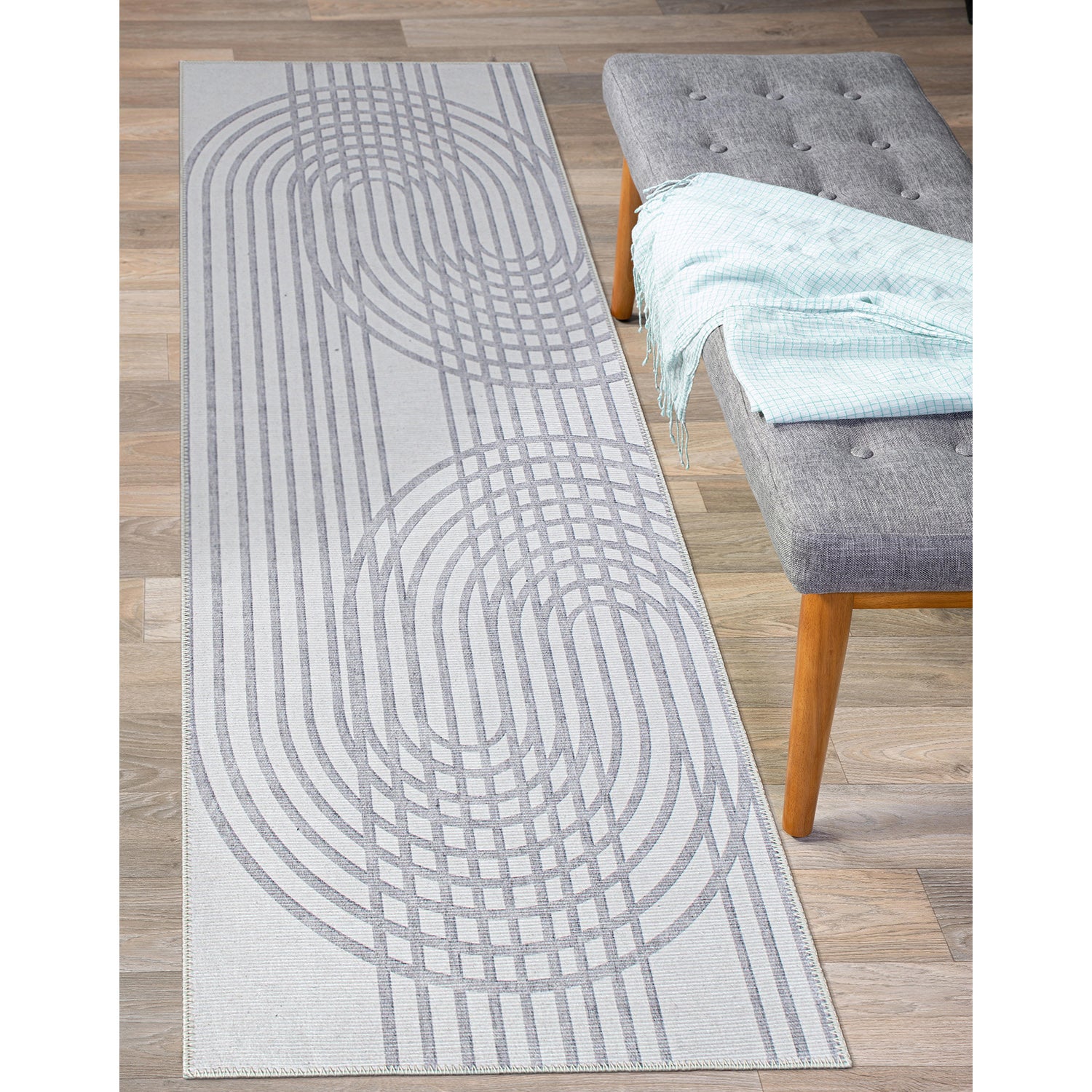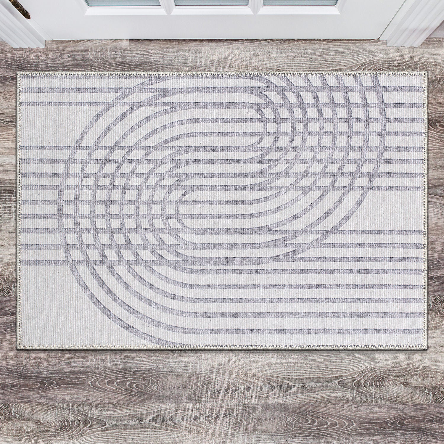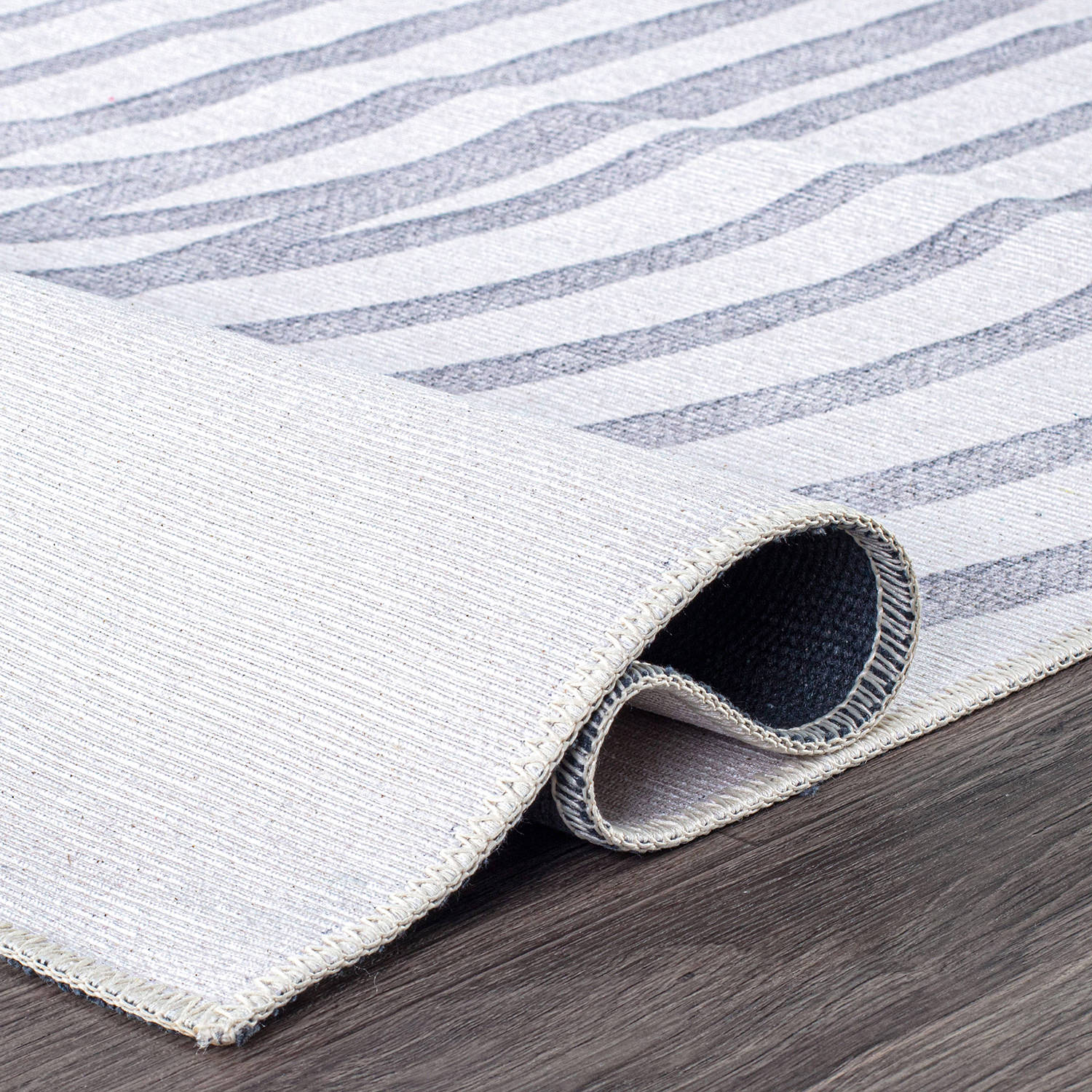 Modern Contemporary Lines Machine Washable Area Rug - Ivory