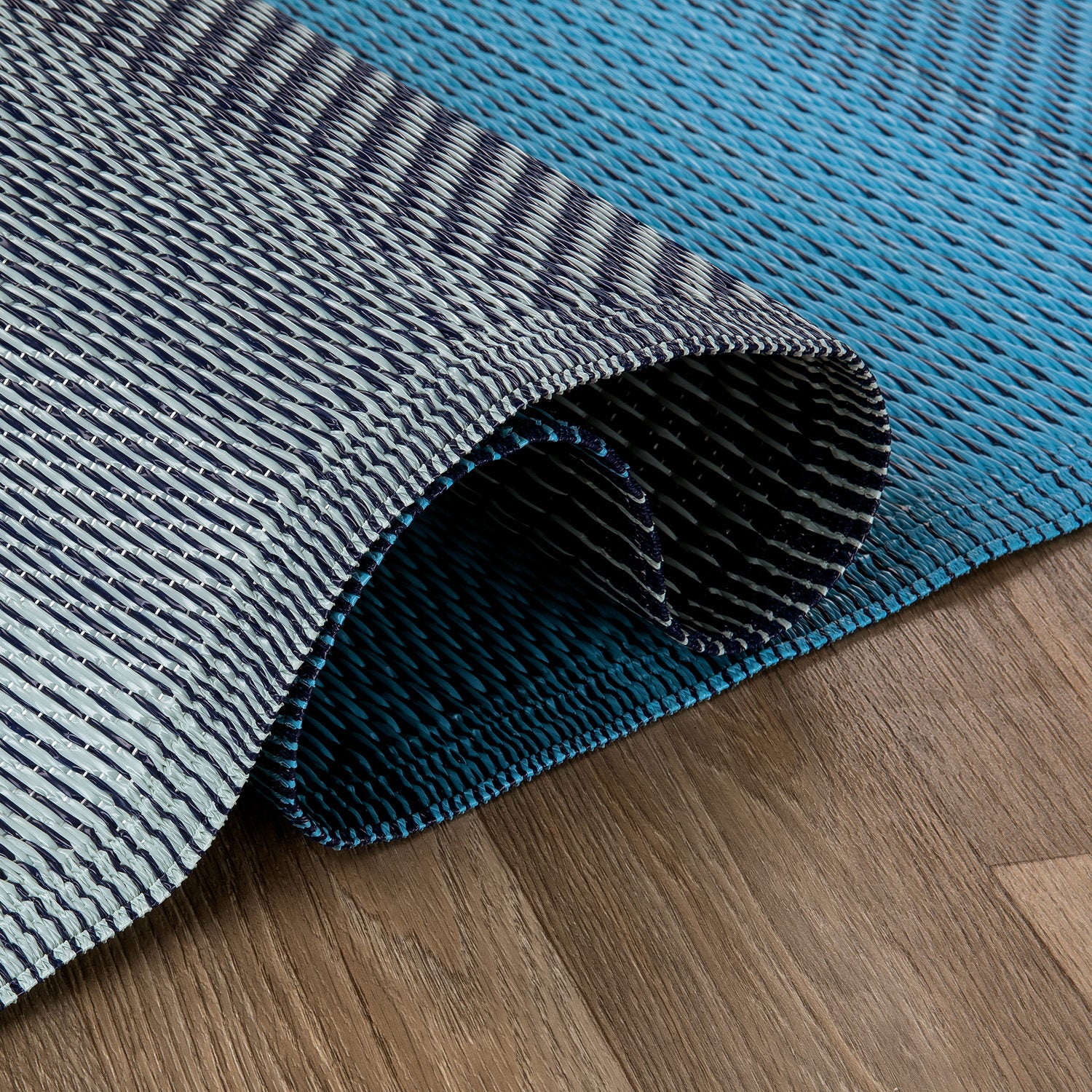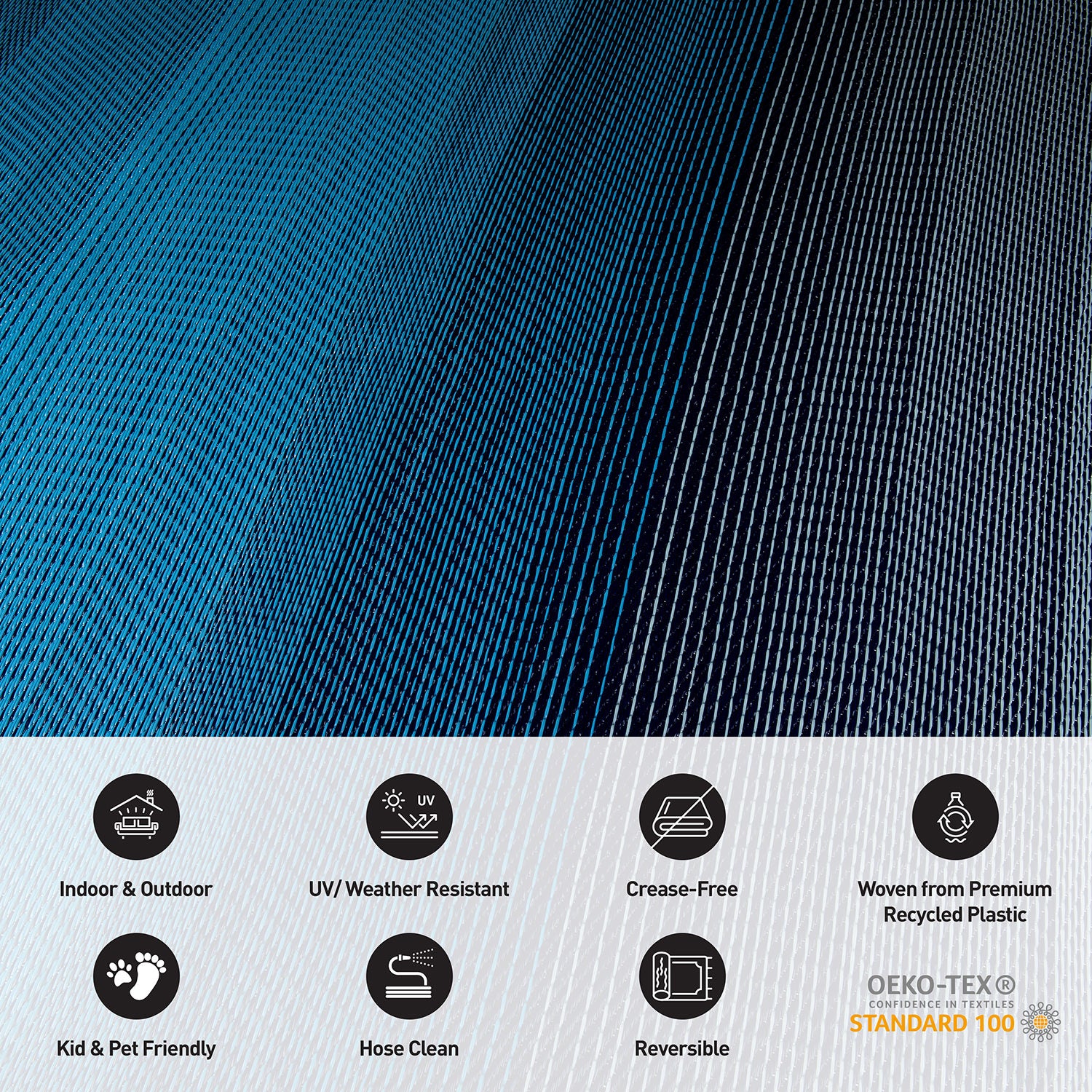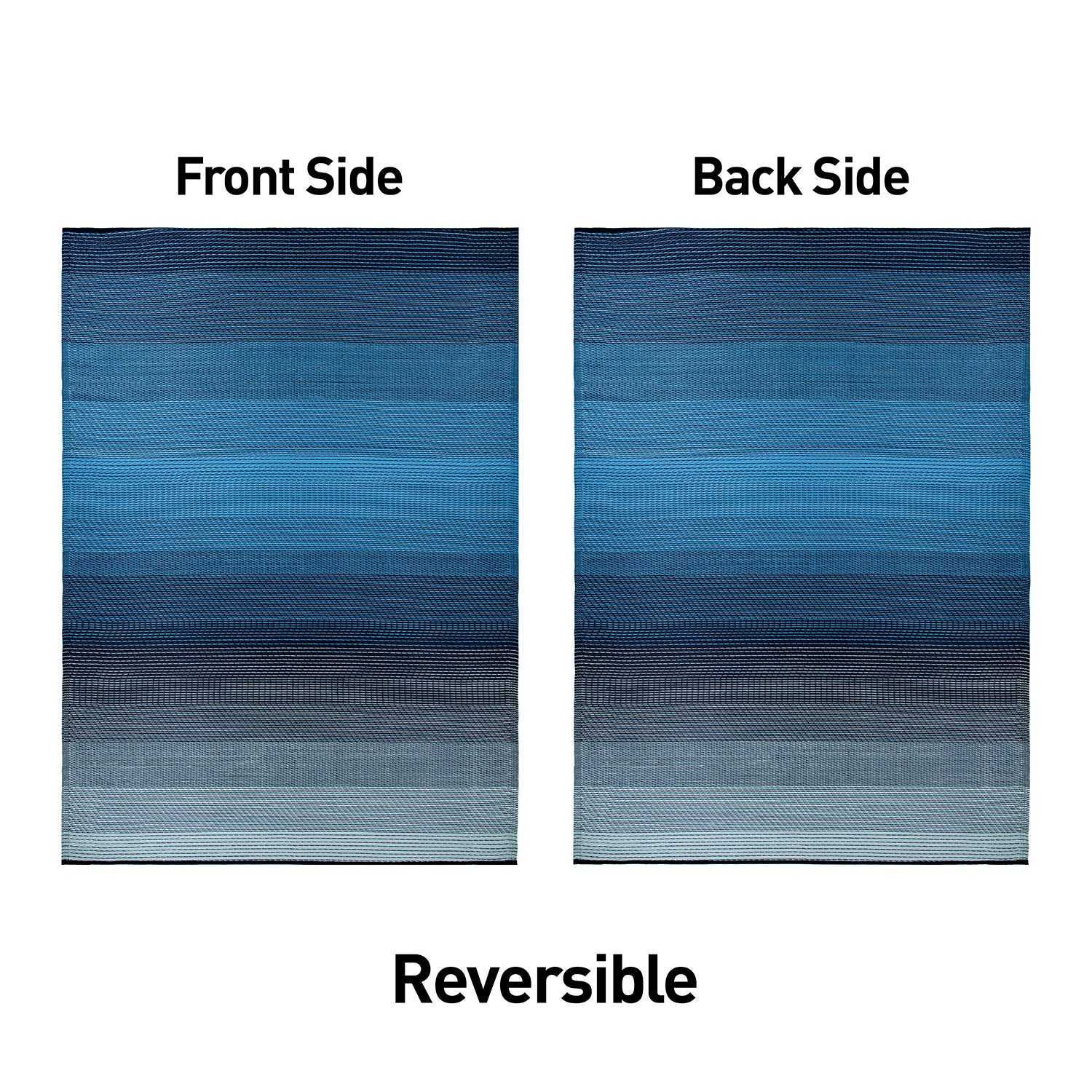 Contemporary Stripe Shade Reversible Recycled Plastic Outdoor Picnic Mat, Camping Rug, RV Rug - Blue