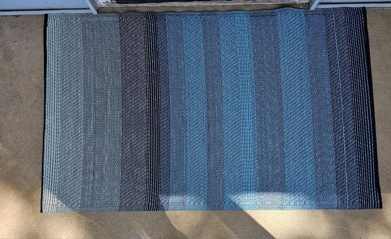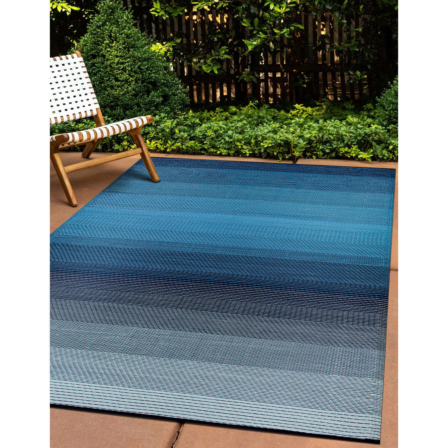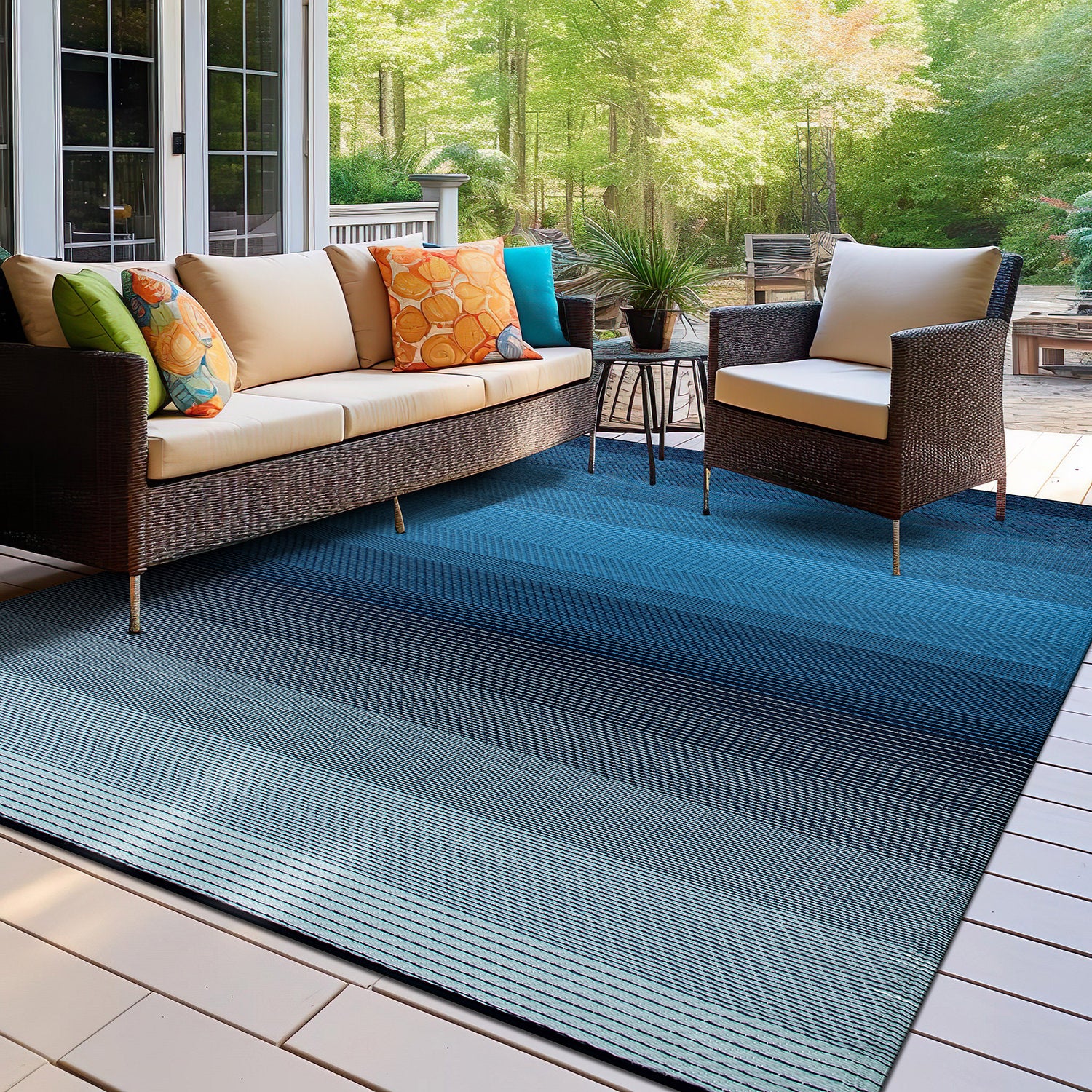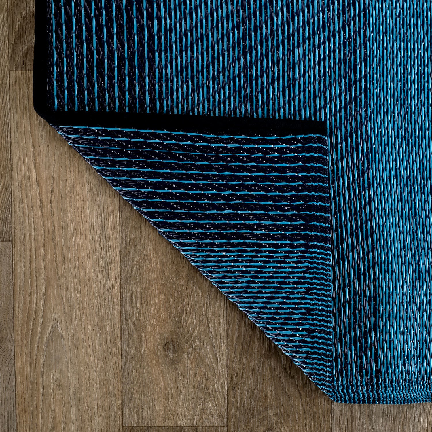 Contemporary Stripe Shade Reversible Recycled Plastic Outdoor Picnic Mat, Camping Rug, RV Rug - Blue