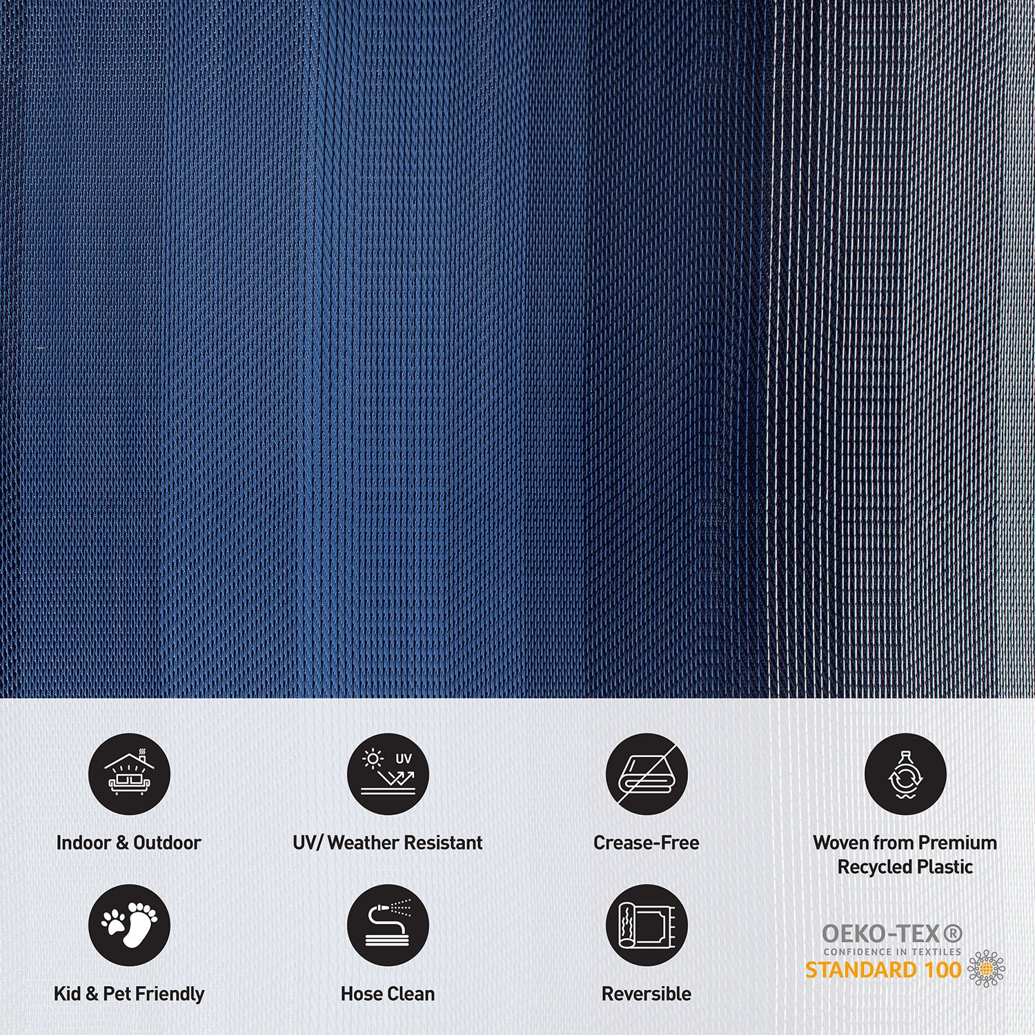 I had been looking for an outdoor rug that we could use underneath the catio on our front porch and was pumped when I got to try this one out. I love blue so the colors are perfect - it is super easy to clean (especially when a kitty pukes on it) and I love that it is recycled so it is sustainable, too. I would definitely purchase this and recommend to friends!