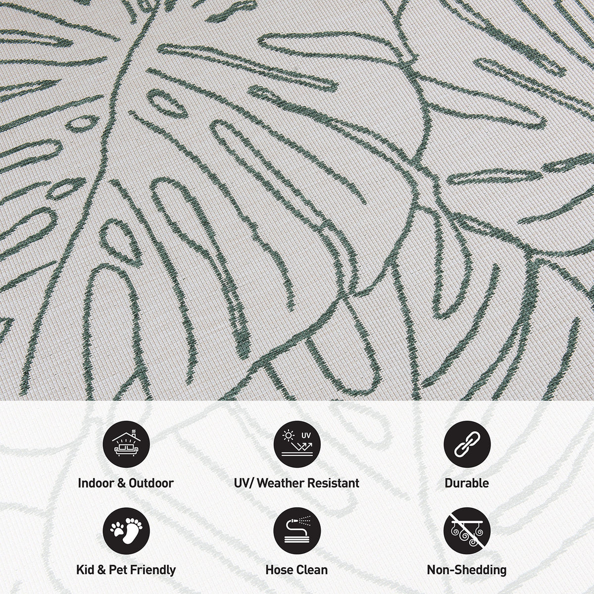 • Easy Care: These stain-resistant rugs are easy to maintain. When spills and accidents occur, blot the stains, rinse with a hose, sweep, or use a leaf blower to remove dirt.