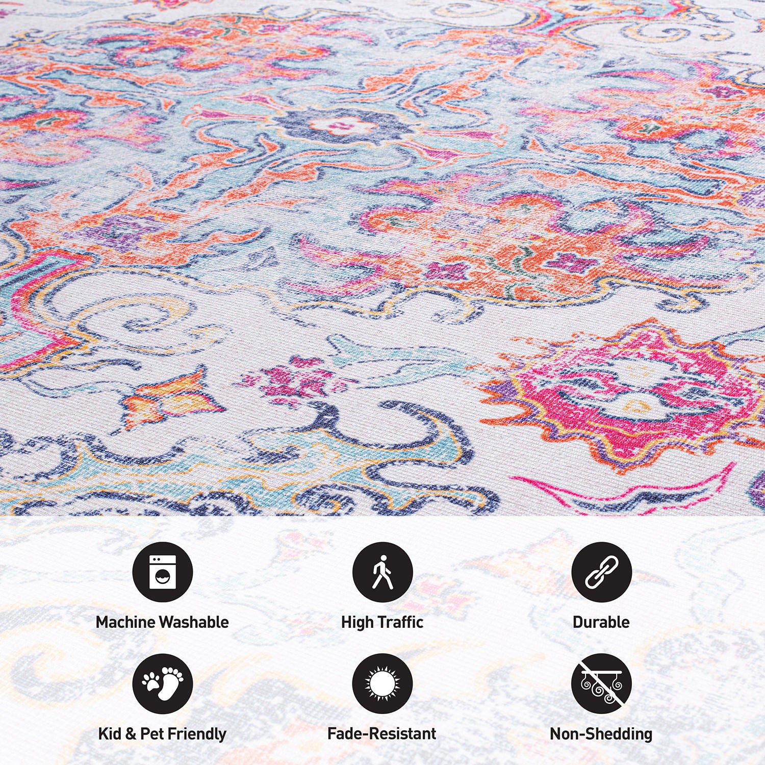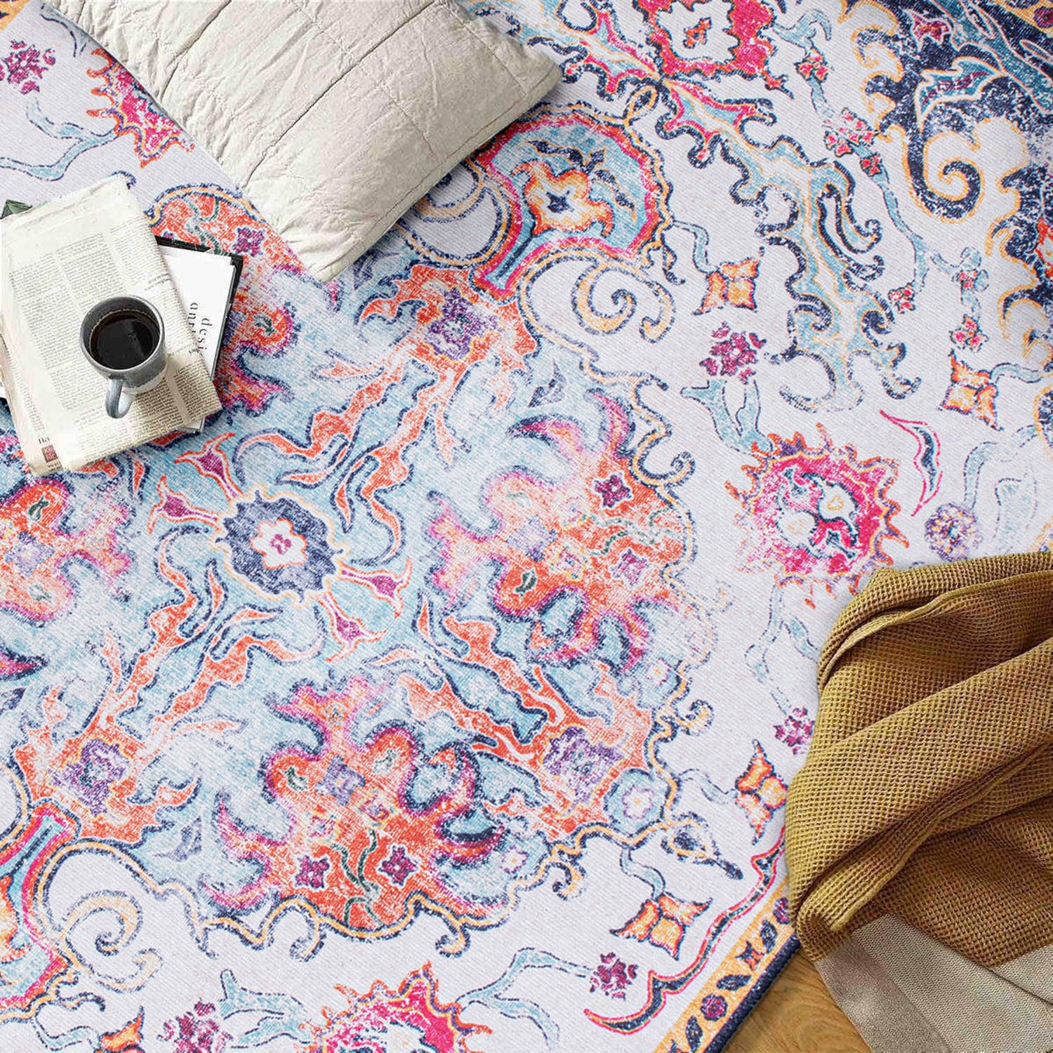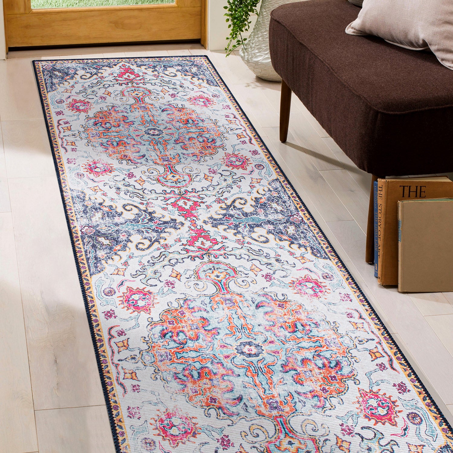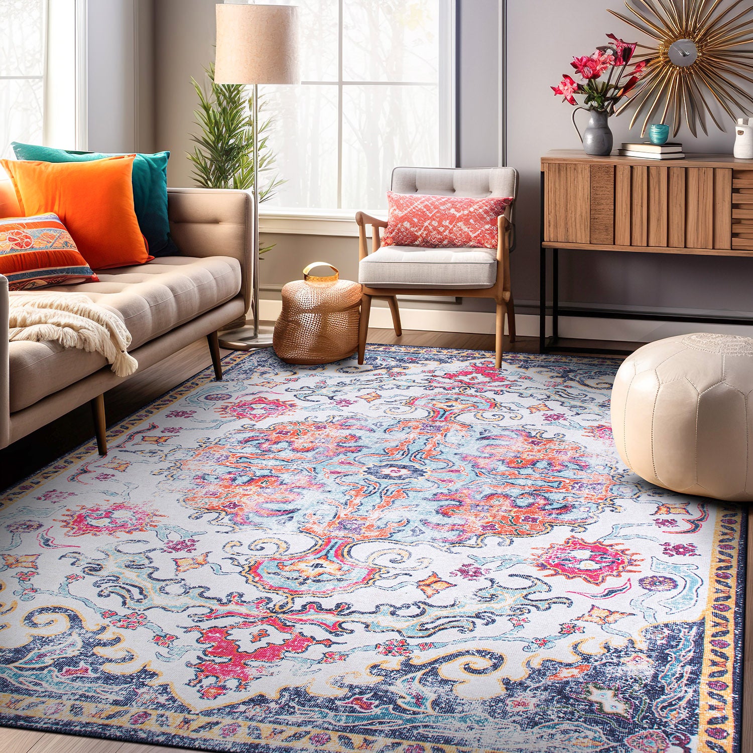This is such a beautiful rug. The colors are even prettier in person and I love that it’s washable!