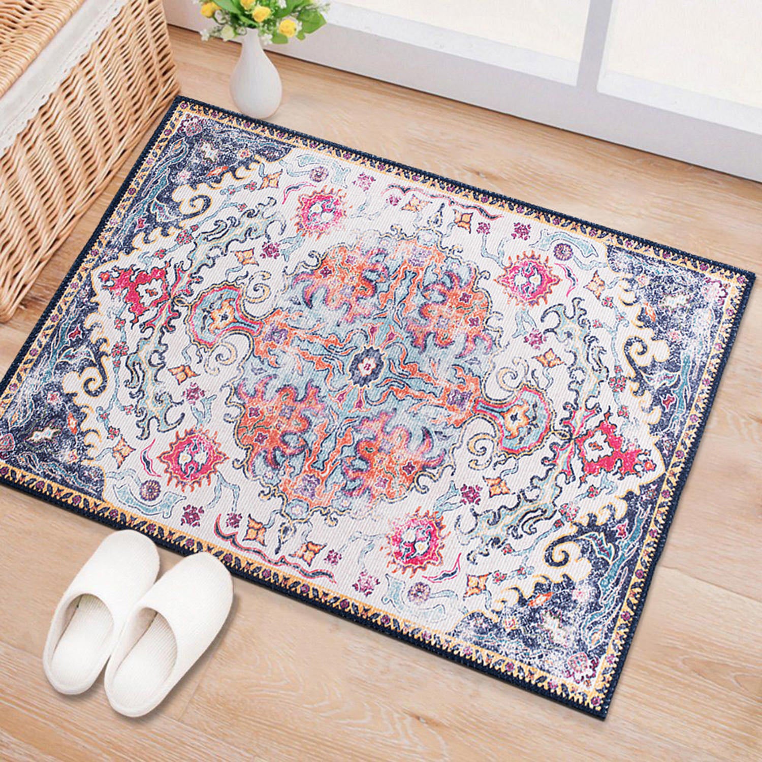This Rug is so pretty and the perfect size for putting in my kitchen in front of my sink. I like that it is thin and can be thrown into the washing machine for easy clean up for all the little accidents that may happen in the kitchen. The only thing that I do not like is that it is fairly slick against my tile floors and tends to slide around, so I would suggest some sort of mat to place under to help keep it from sliding.