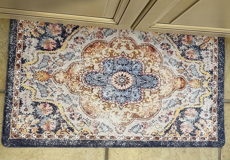 I recently got this anti-fatigue rug for our kitchen and it has been a great addition. It is soft and provides a great cushion on the tile floor, and it has a nice design. The colors are a little different than I had expected, but overall I would recommend this rug.