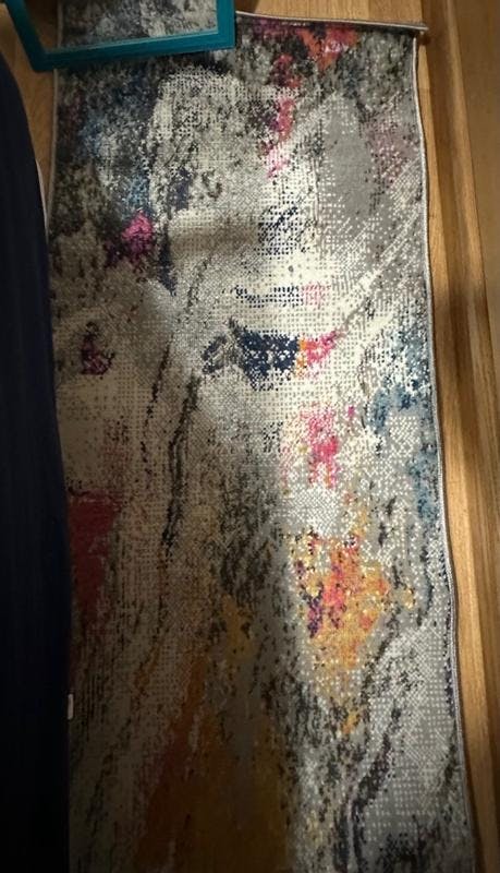 Distressed Contemporary Abstract Watercolor Stain Resistant Soft Area Rug - Blue