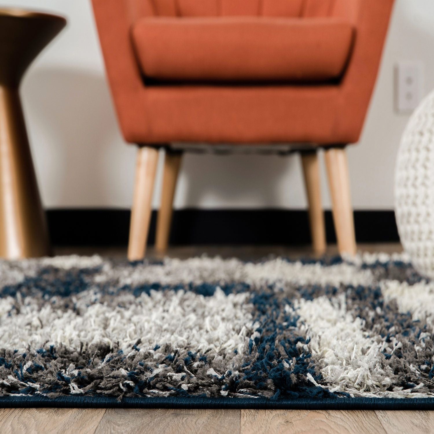 Welcome this luxurious, cozy and reliable shag rug to your home for added style and glamour. It is exceptionally easy to maintain and spot clean when necessary. The gentle pile height allows this rug be used in high foot traffic areas without deterioration. It is completed with rich colors, different sizes and abstract design. This collection offers area rugs that are suitable for all indoor spaces.