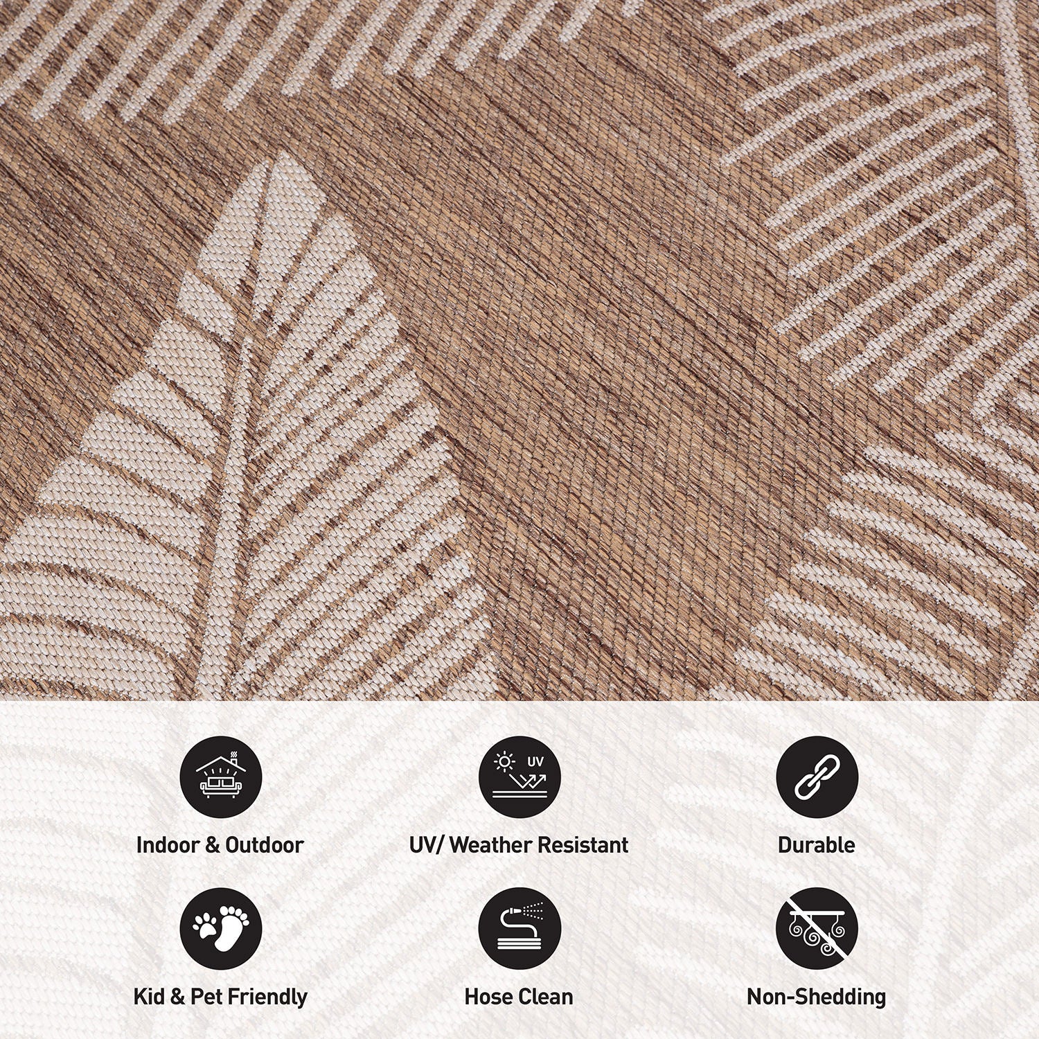 • Non-shedding with a sleek pile height to fit underneath patio furniture or in entryways seamlessly.