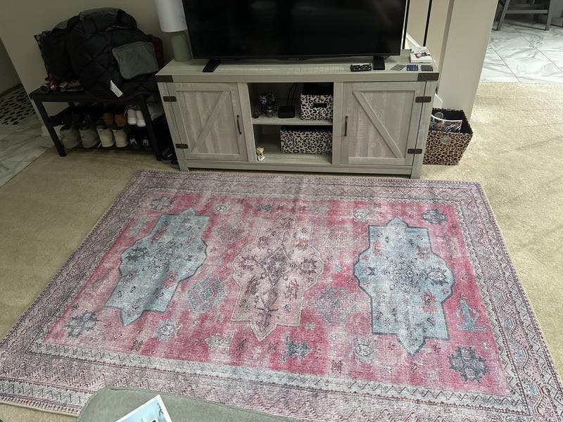 I absolutely love this rug. I haven't fully decided where I'm leaving it yet but right now it's a great accent piece for my living room. I love that it is machine washable. The faded look of the rug is just adorable. The size is also awesome for so many spaces to spruce up any room. This brand has so many cute options for rugs!