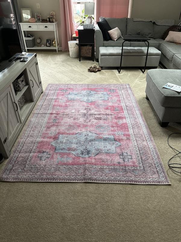 I’ve been looking for a quality distressed pink rug for my daughter’s room and this one is it. It blends perfectly with her color scheme and fits well at the feet of her toddler bed. It’s soft enough to use in a bedroom but still durable for toddler activities.