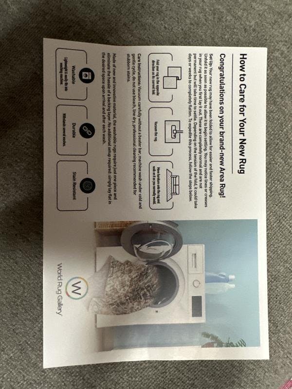 We layer rugs in our high traffic areas. This had no weird chemical smell at delivery which was great. Even better it’s nice to walk on but not too plush or high pile where our robot vacuum can’t get over it. No issues with our carpet steam cleaner used with our muddy German shepherds. Highly recommend.