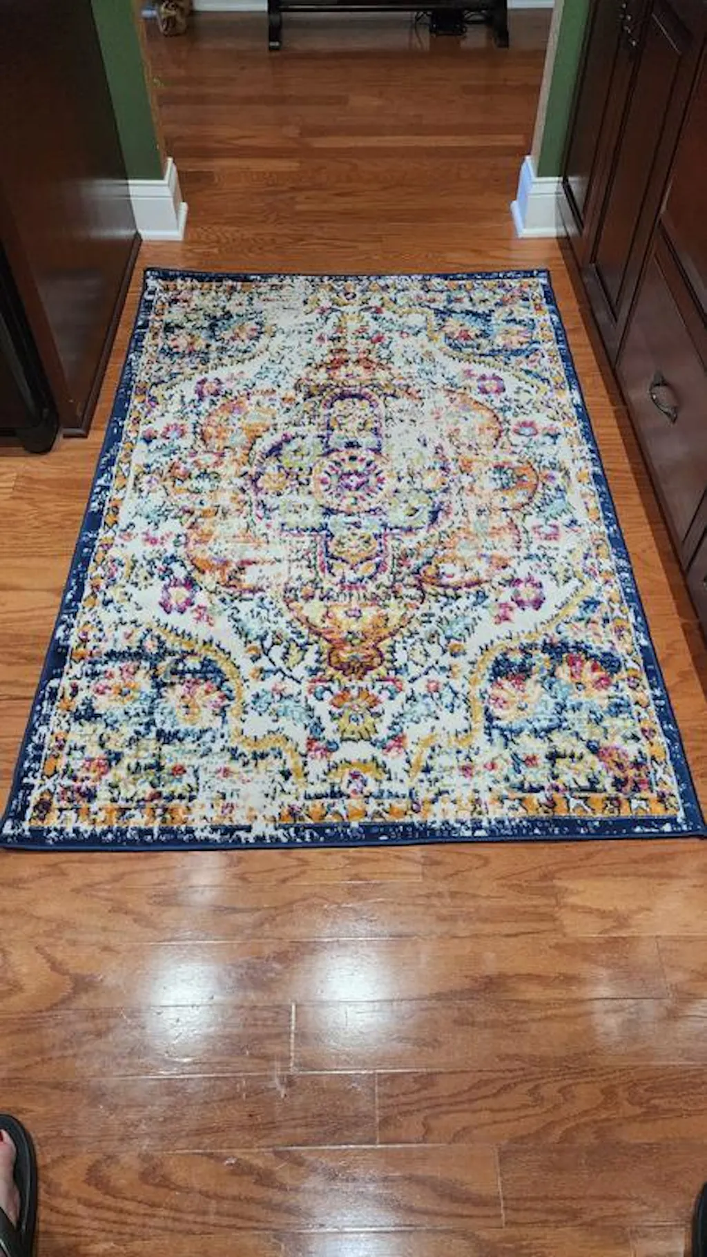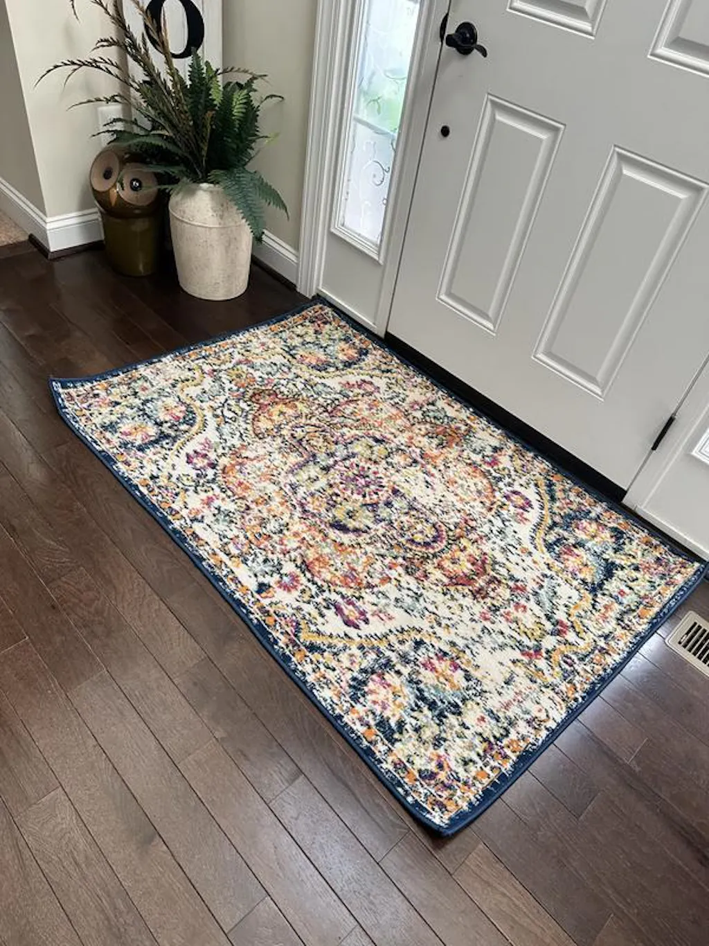 Bring a pop of fun Bohemian pizzazz into your home with the delightful design of this unique rug. The sunny pattern brings a splash of life to your space with its floral colors. This rug is woven by machine of durable but soft polypropylene fiber, ensuring years of enjoyment.