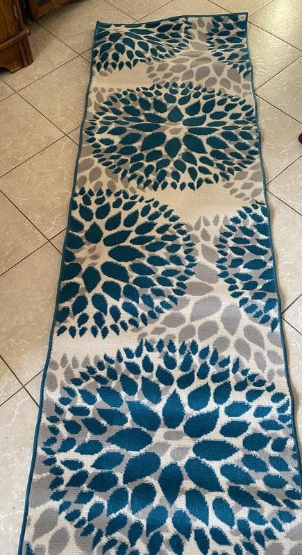 Energize your home or office with this colorful, latex-free area rug. Large-scale floral medallions burst across the surface, bringing a dynamic twist to your decor. The machine-made polypropylene pile is soft and resistant to stains, and the low height enables easy vacuuming.