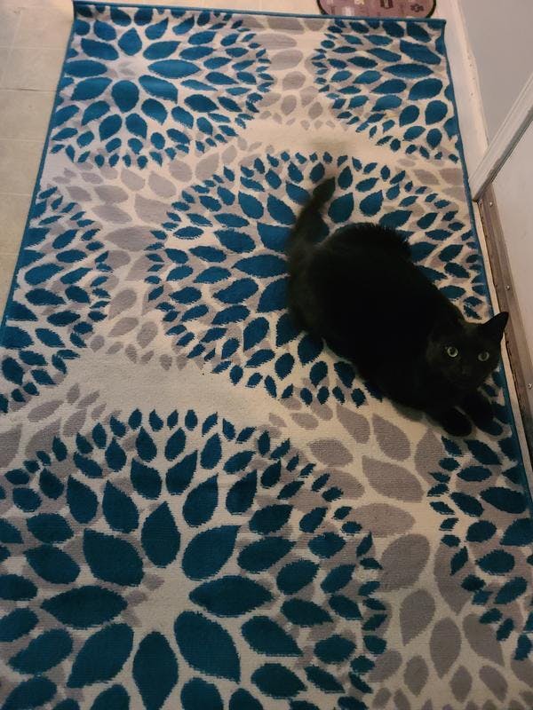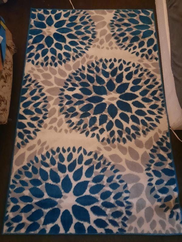 Energize your home or office with this colorful, latex-free area rug. Large-scale floral medallions burst across the surface, bringing a dynamic twist to your decor. The machine-made polypropylene pile is soft and resistant to stains, and the low height enables easy vacuuming.